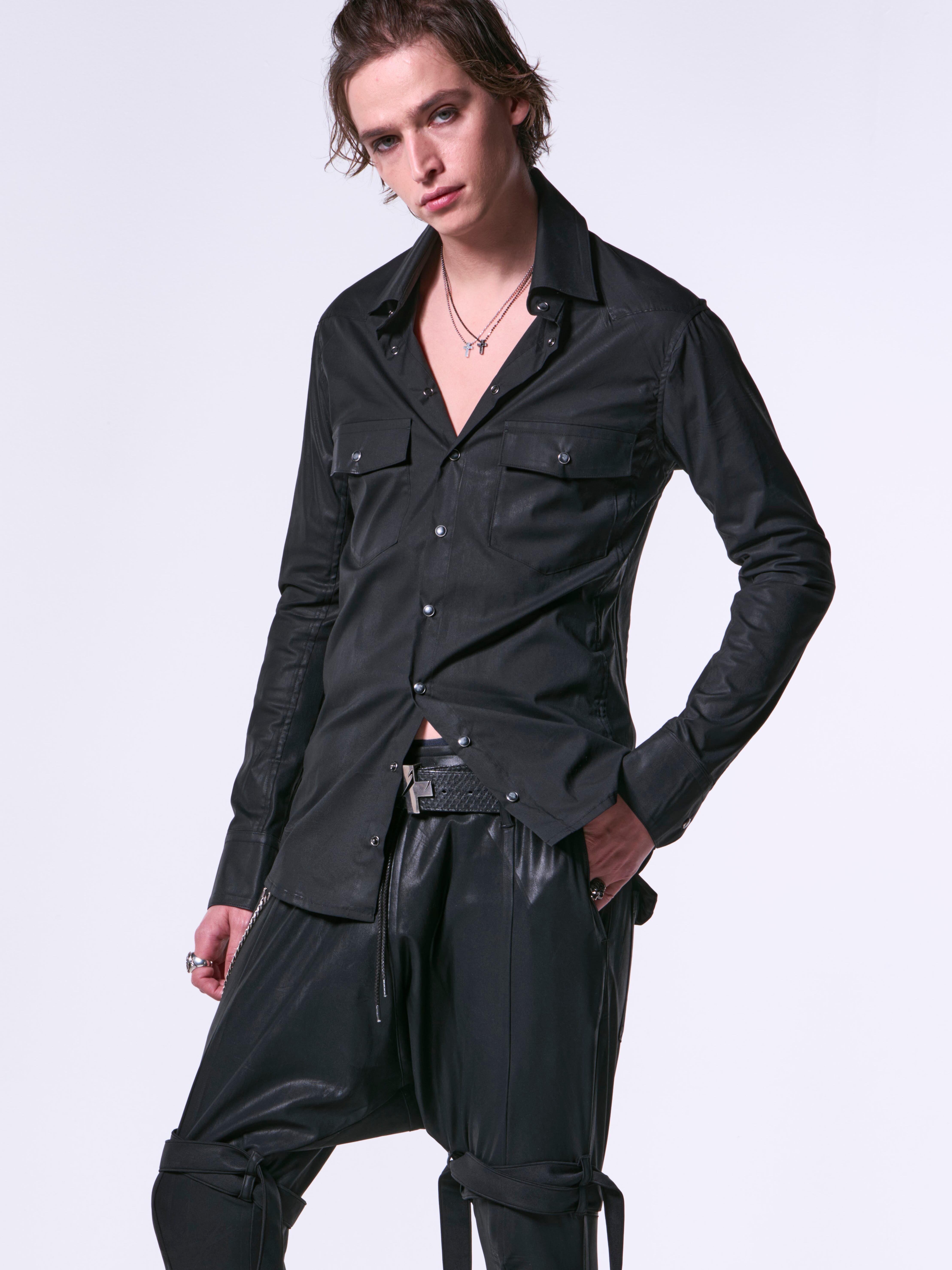 膝上からタイトなメリハリのあるシルエット膝のベルトは着脱可能。