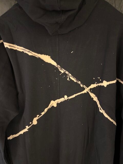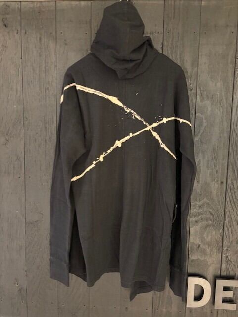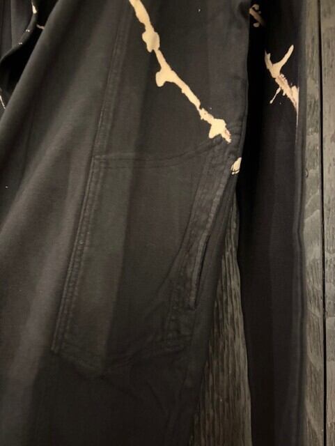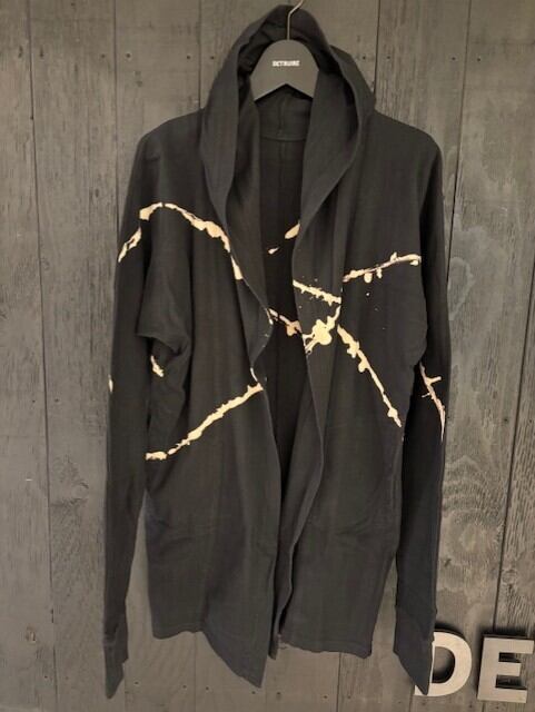 フライス素材に弓ブリーチ加工のKIMONOフーディカーディガン。