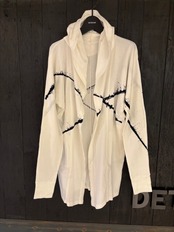 フライス素材に弓染加工のKIMONOフーディカーディガン。
