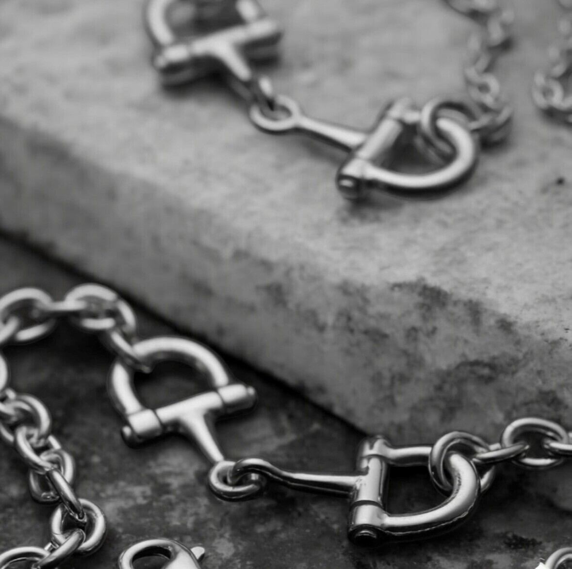 Horse Bit Bracelet シングルジョイントのビットにDリングのビットリングでまとめた洗練されたホースビットブレスレット。馬具本来の質実剛健な作りはしっかりと再現しつつも、スタイリッシュモダンに仕上げています。