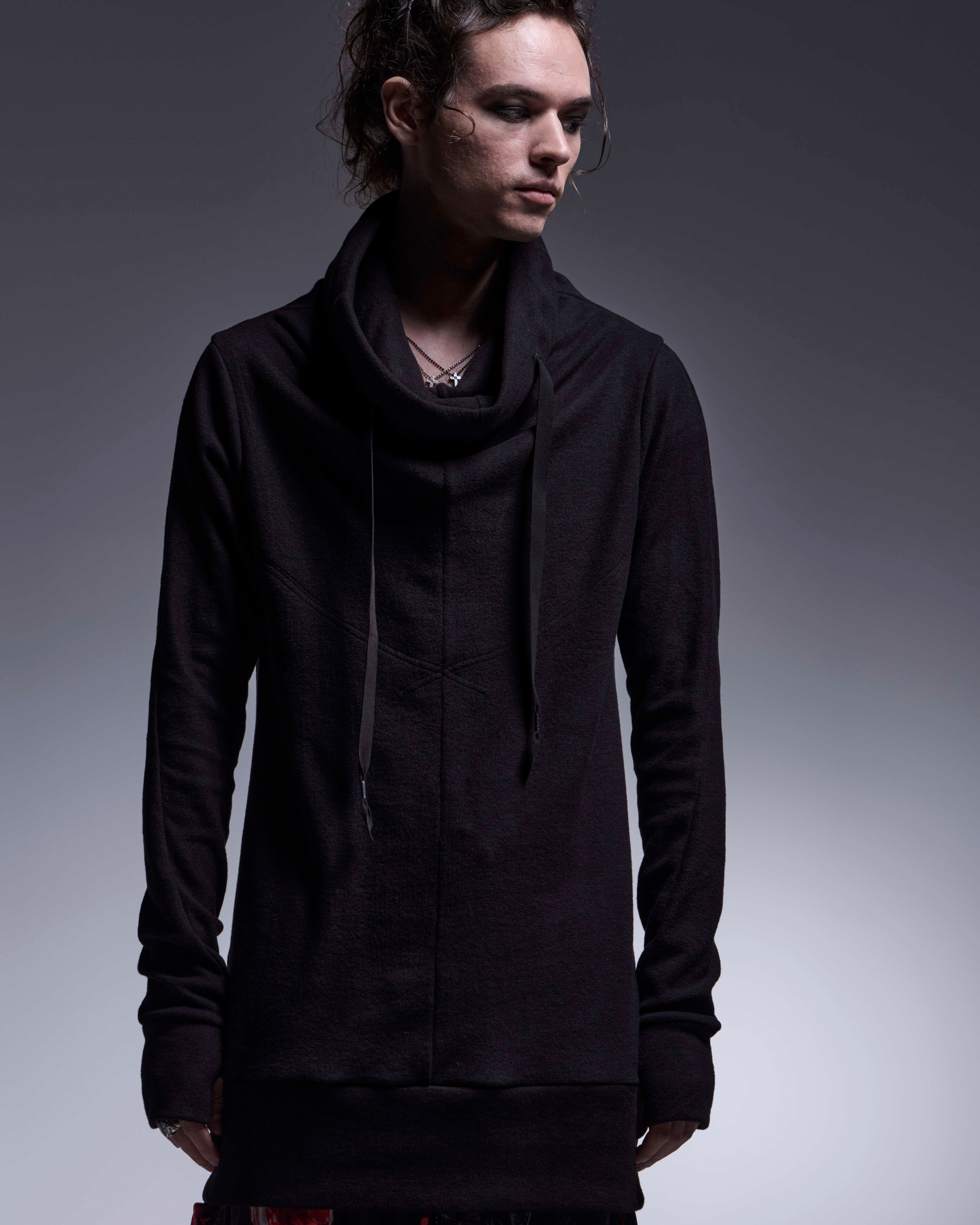 テープをひっぱり首に沿わせて防寒性Upした着方も可能。