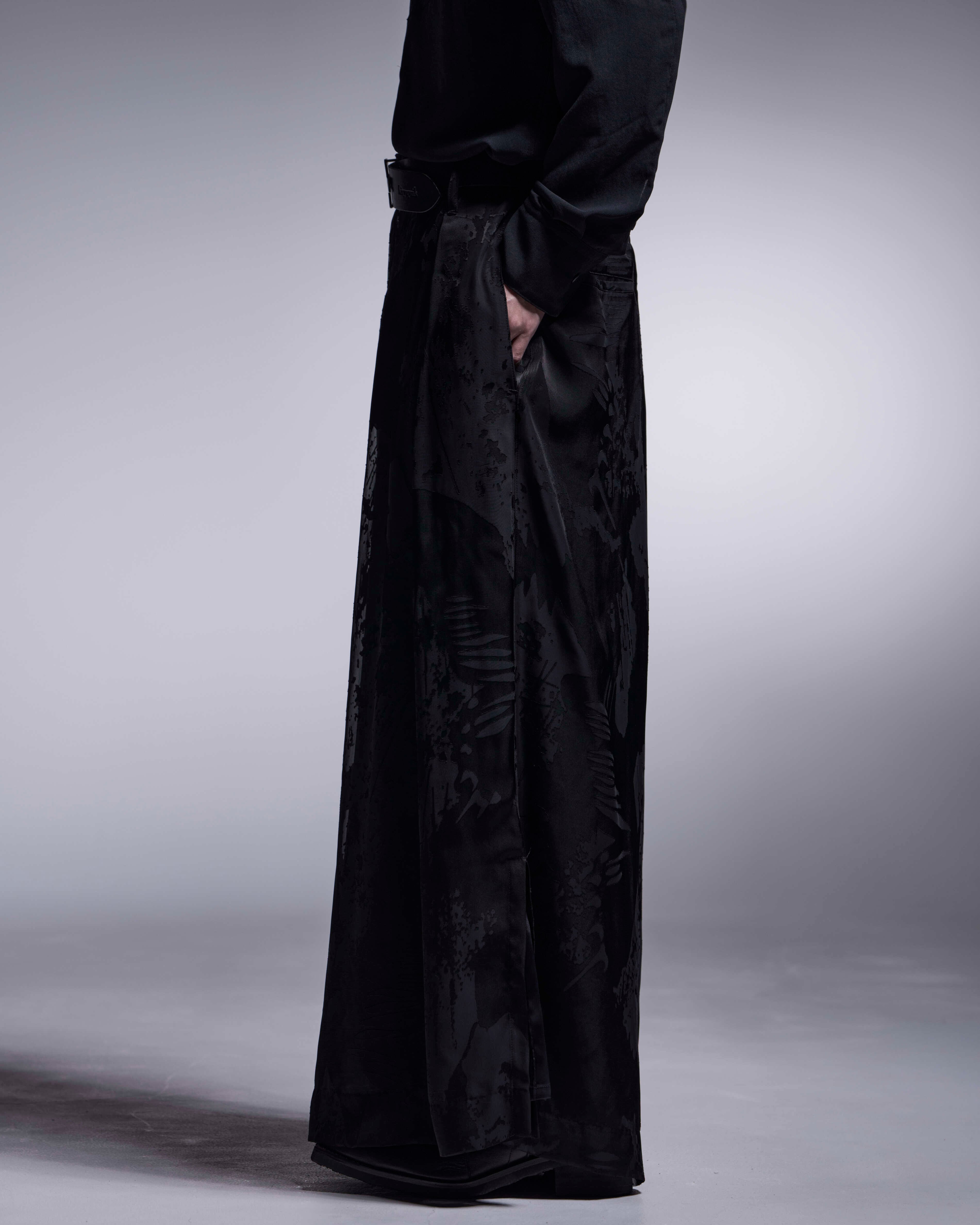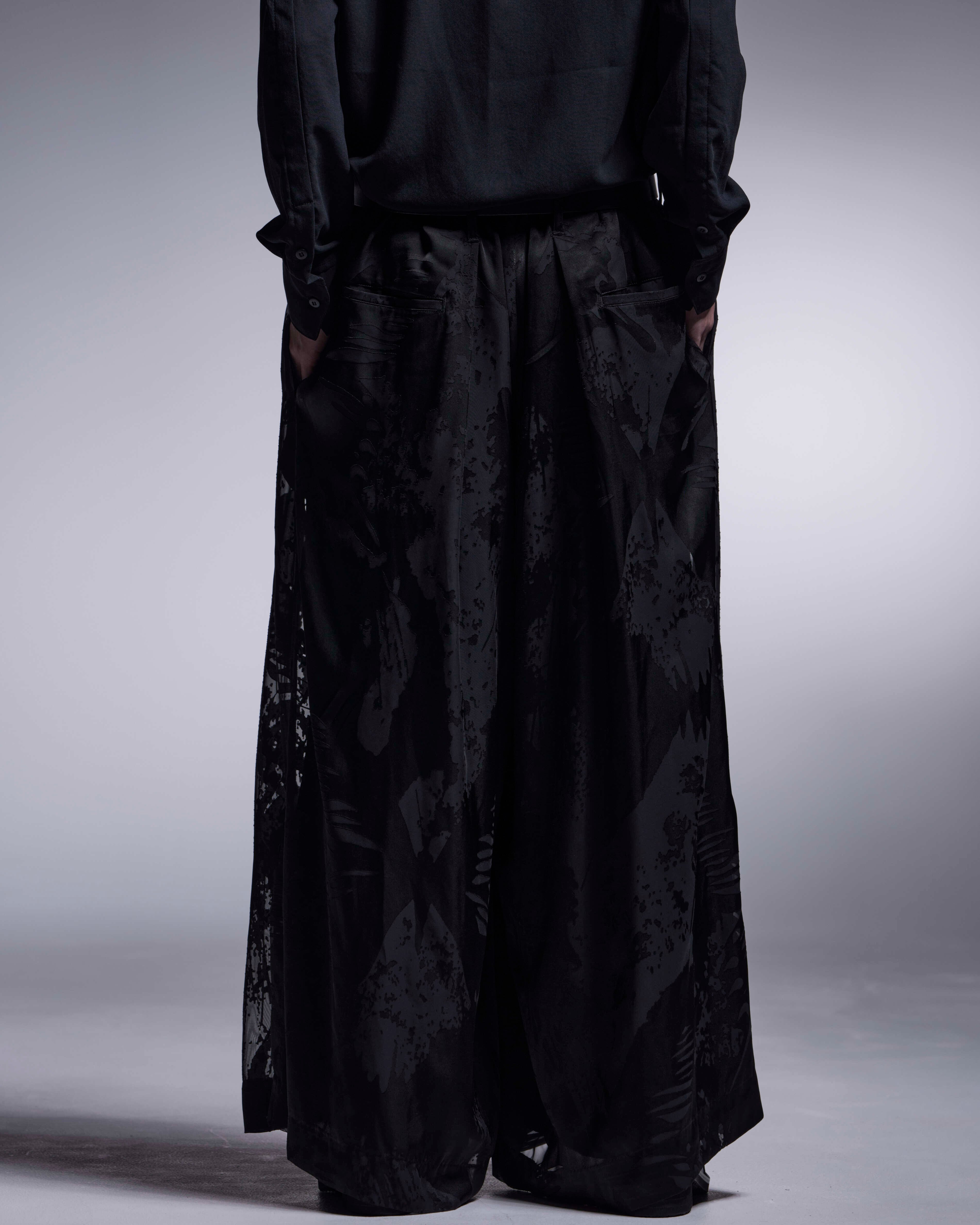 オパール素材のワイドタックスラックス。