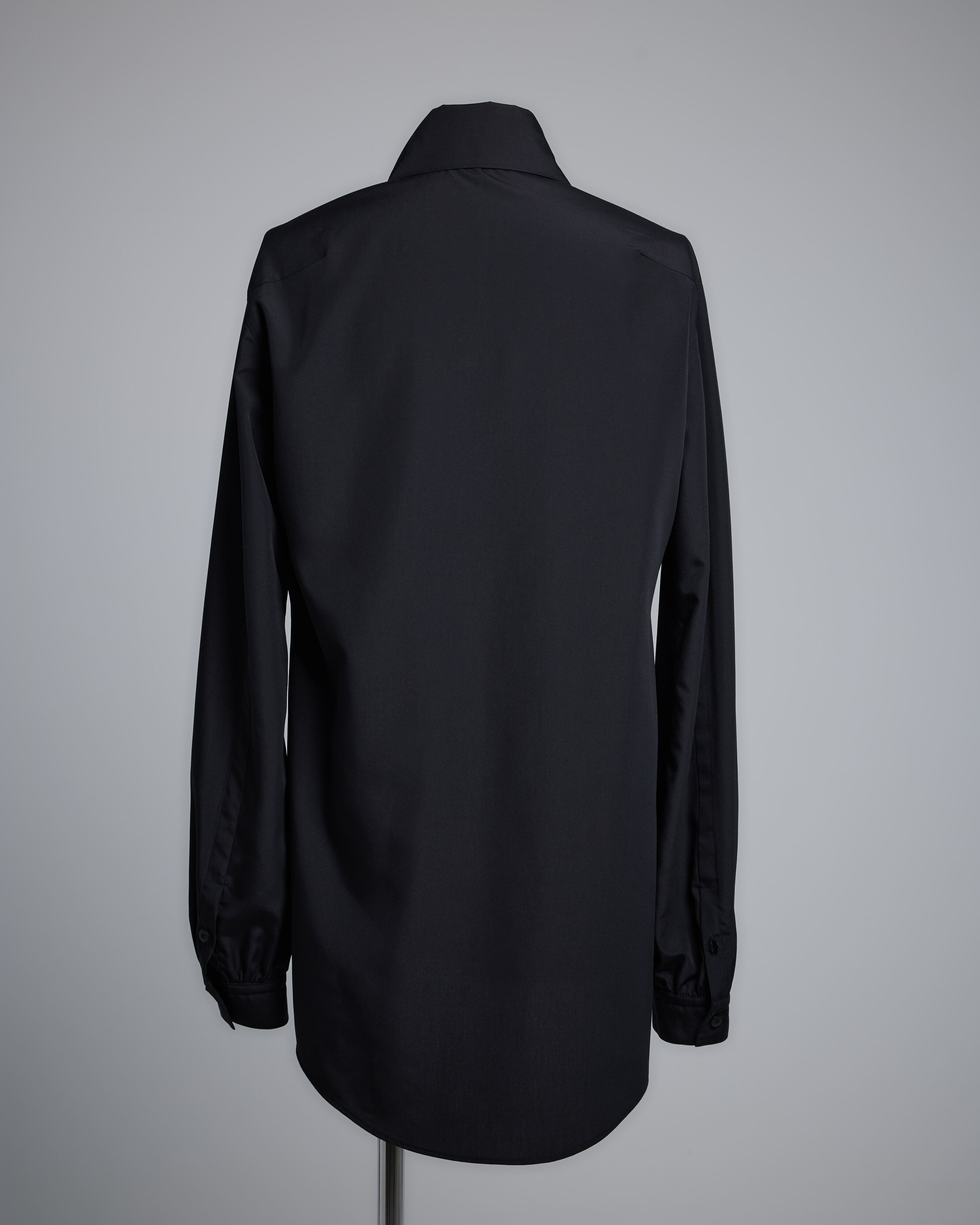 リサイクルポリエステルのブロード生地のフリルシャツ。