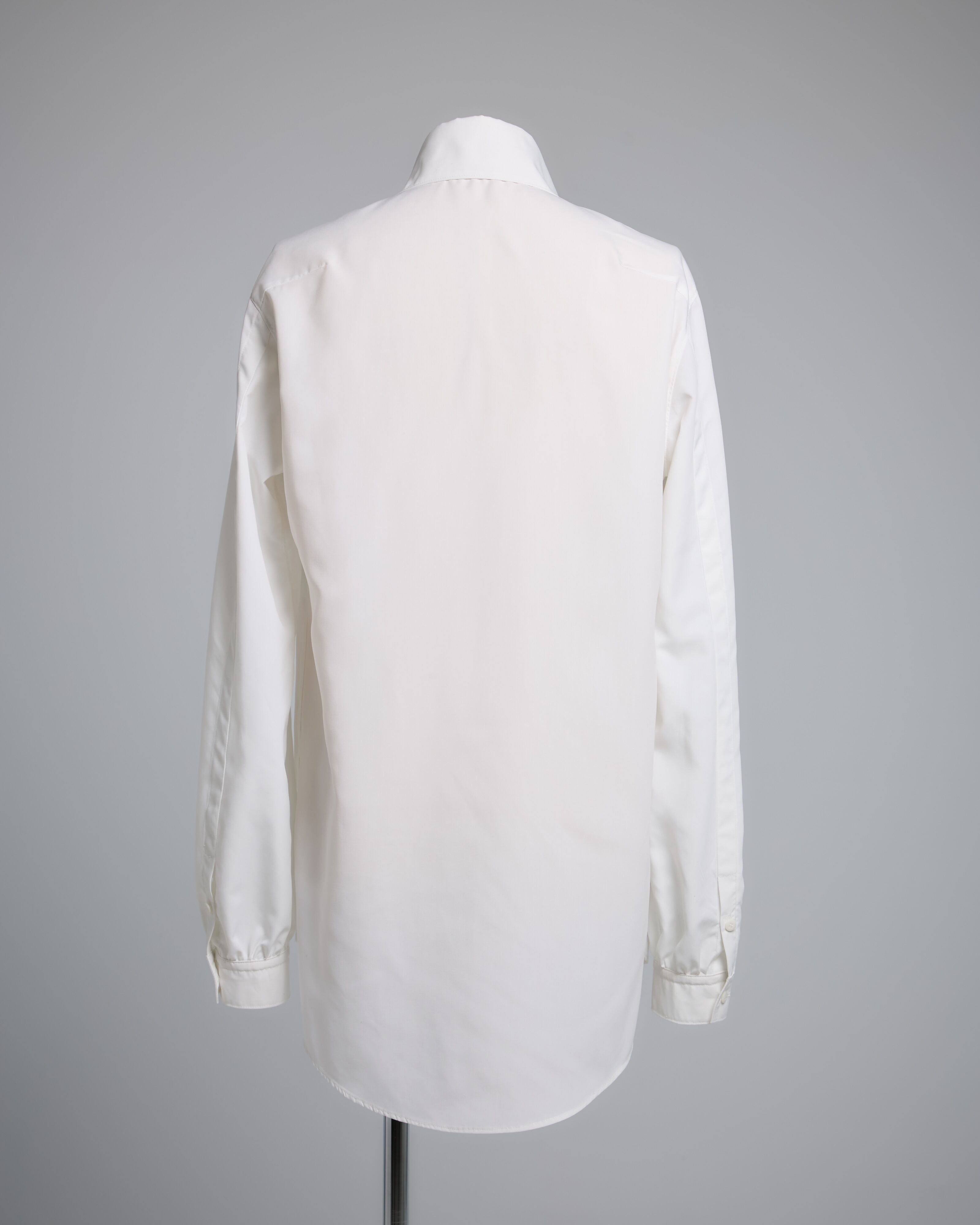 リサイクルポリエステルのブロード生地のフリルシャツ。