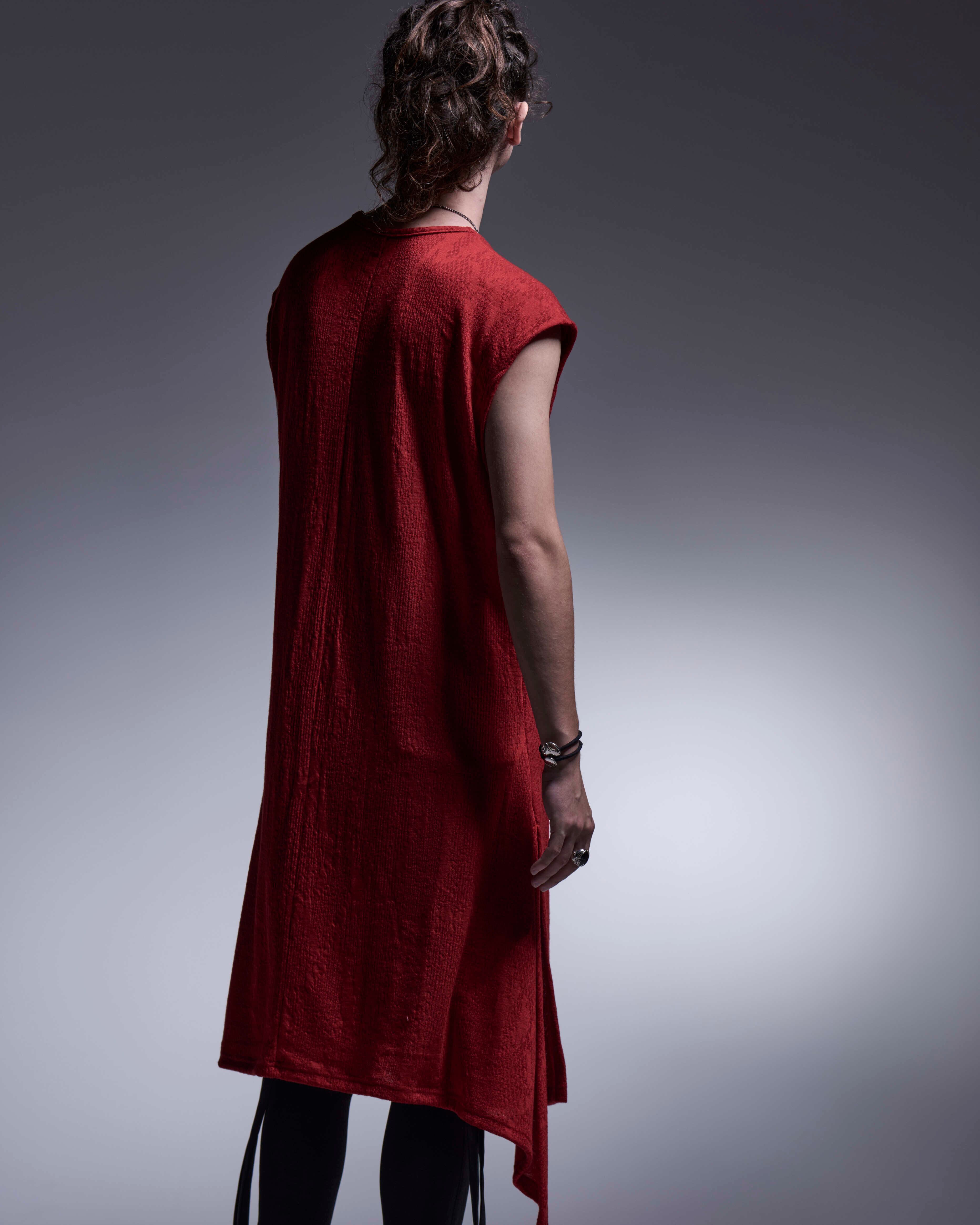 パイソン柄ジャカードジャージフレアーフリルロングタンクトップ。