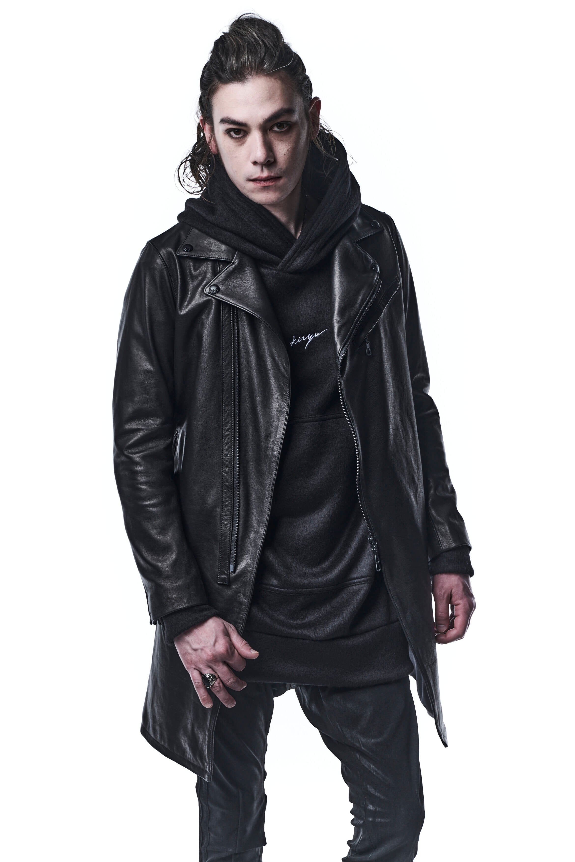 ゆったりした分量のフーディー。
