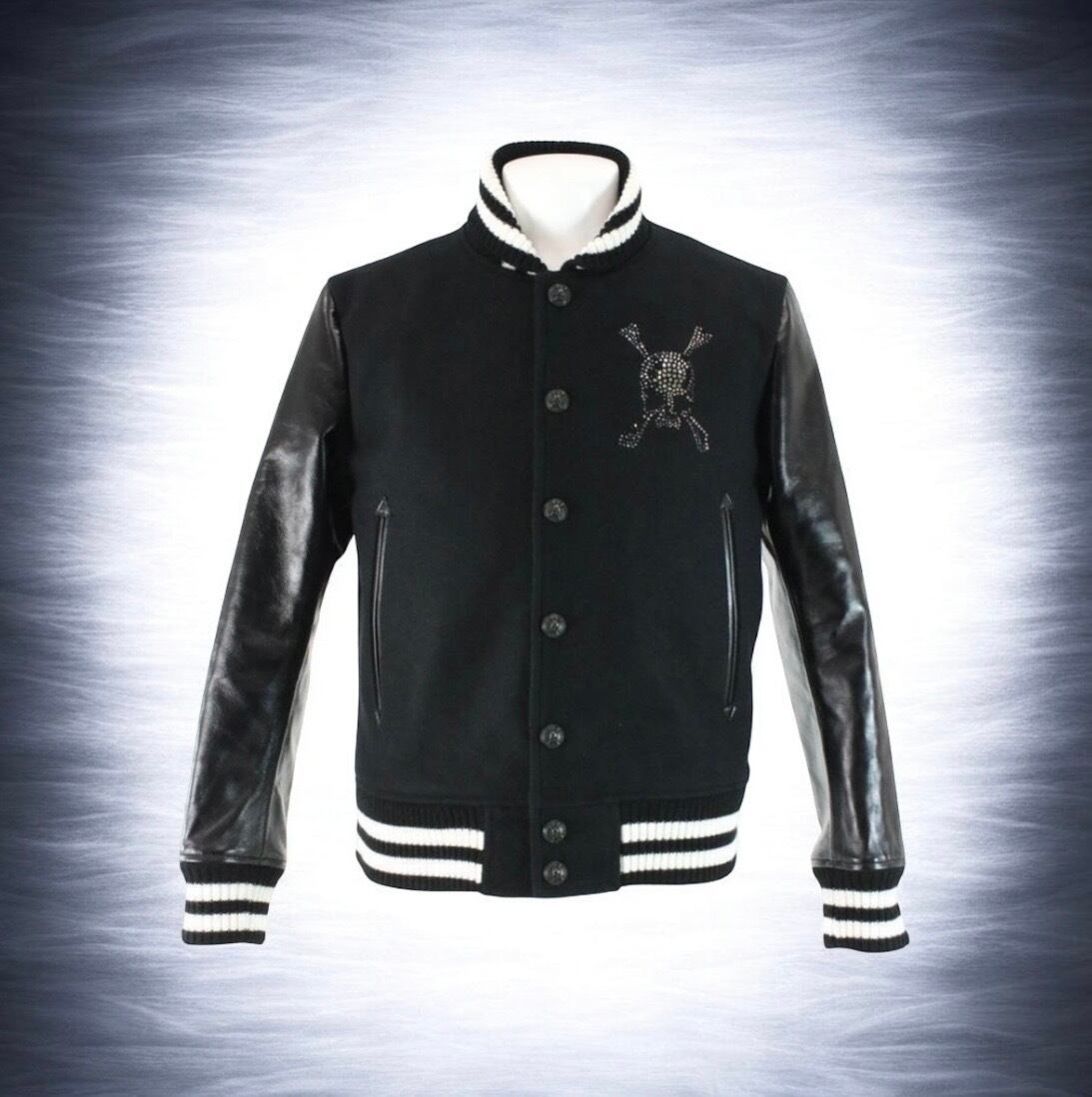 胸にスカルスワロ仕様、スカルドット釦 袖はホースレザー