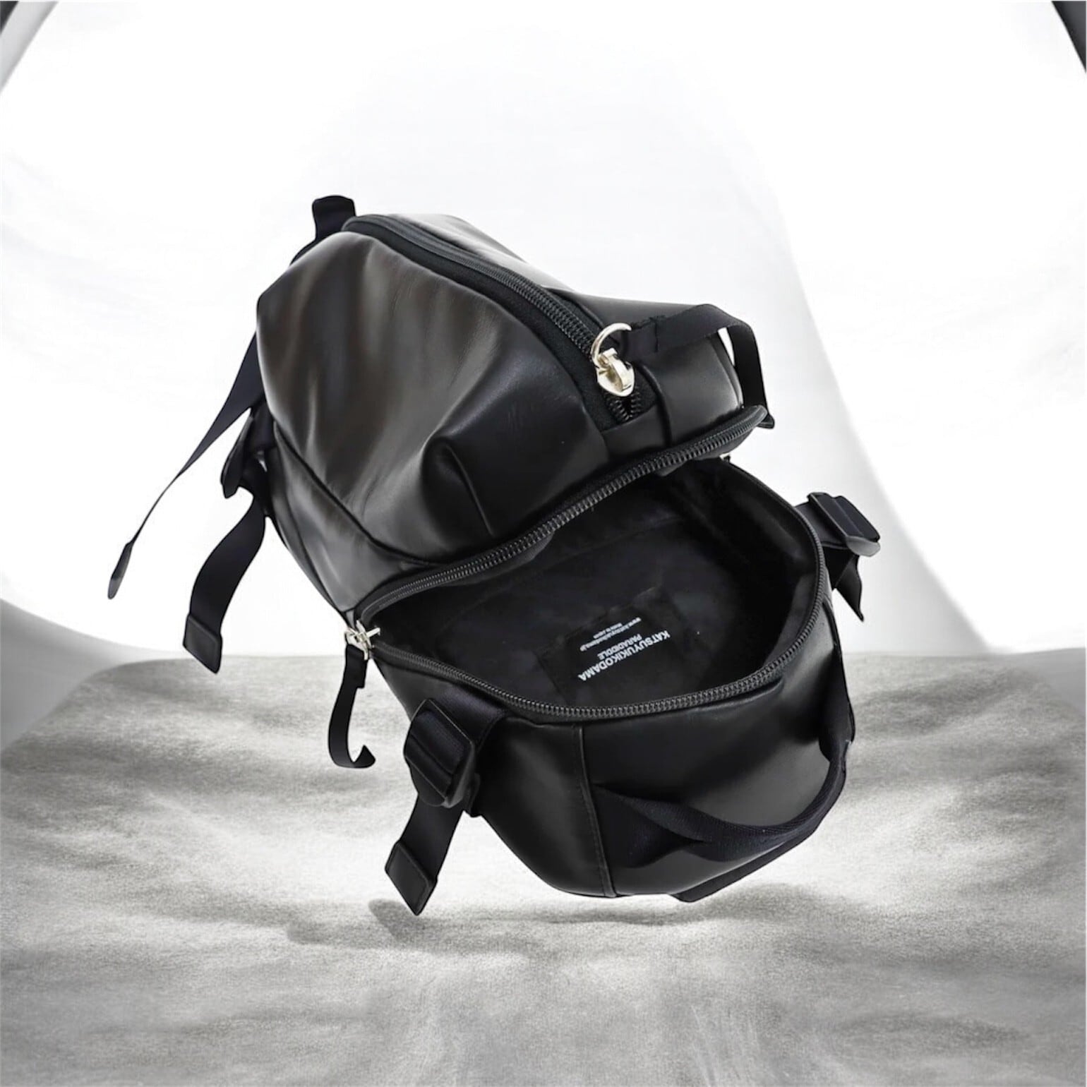 バッグ本体には半艶に仕上げた国産の牛革を使用し、独創的なシルエットを力強い表情に見せてくれます。