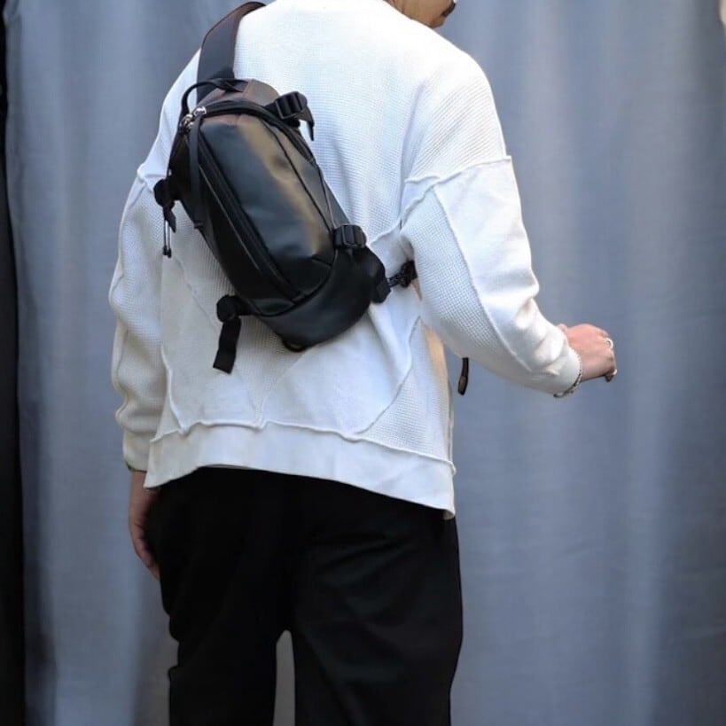 王道のレザーバックパックが気軽に使えるボディバッグに変身
