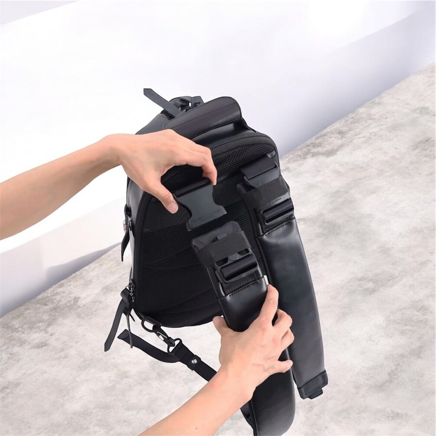当ブランドのリュックサックにはPACK-1からPACK-6までの5モデルが存在します。(PACK-3は現在廃番) その中でもよりミニマルに、よりオン・オフ兼用で使えるように制作しました。