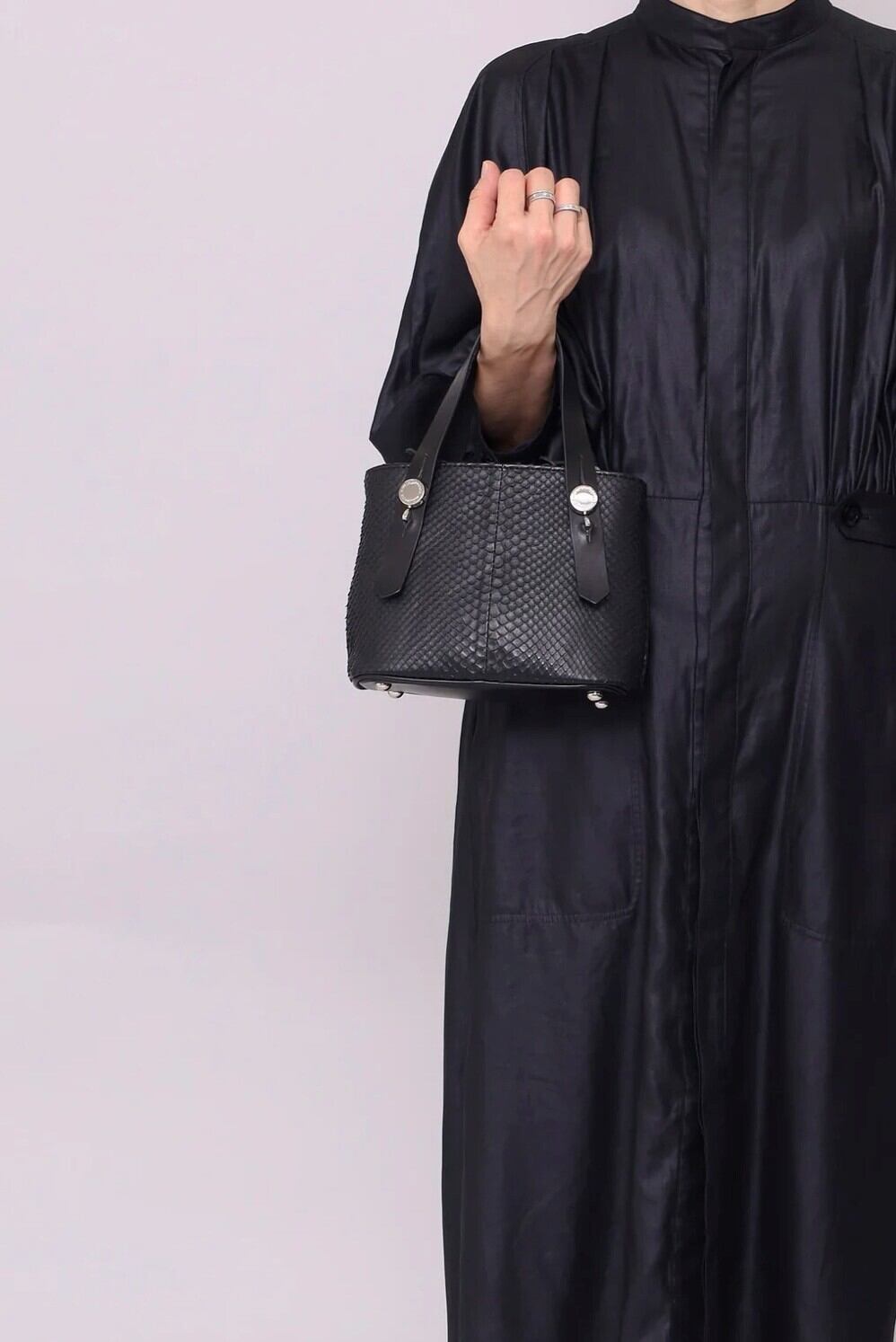 バッグのサイズが小さいと意外にもコーディネトのバランスが取り易く、 様々なテイストやシルエットで楽しんでいただきたいアイテムです