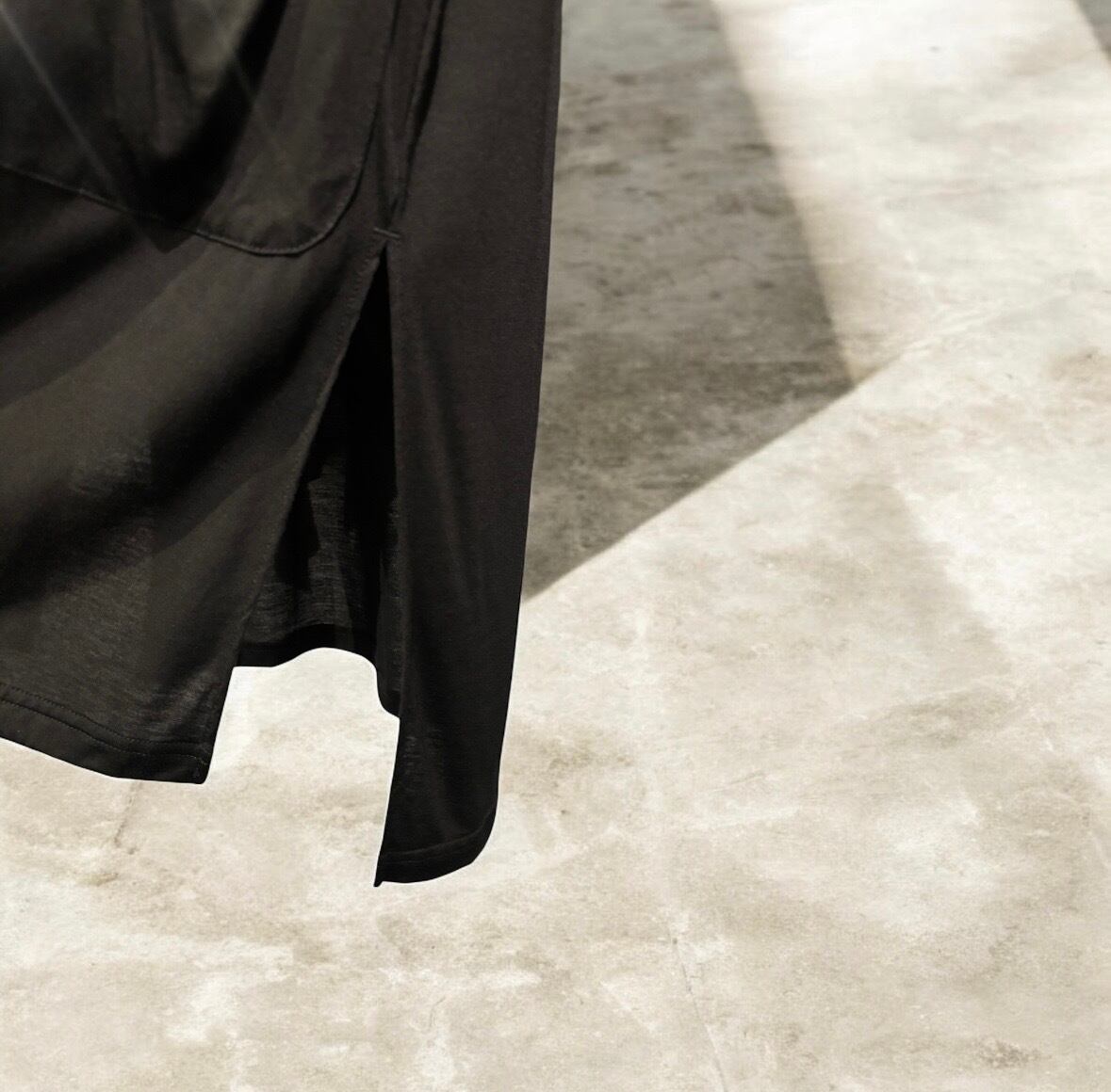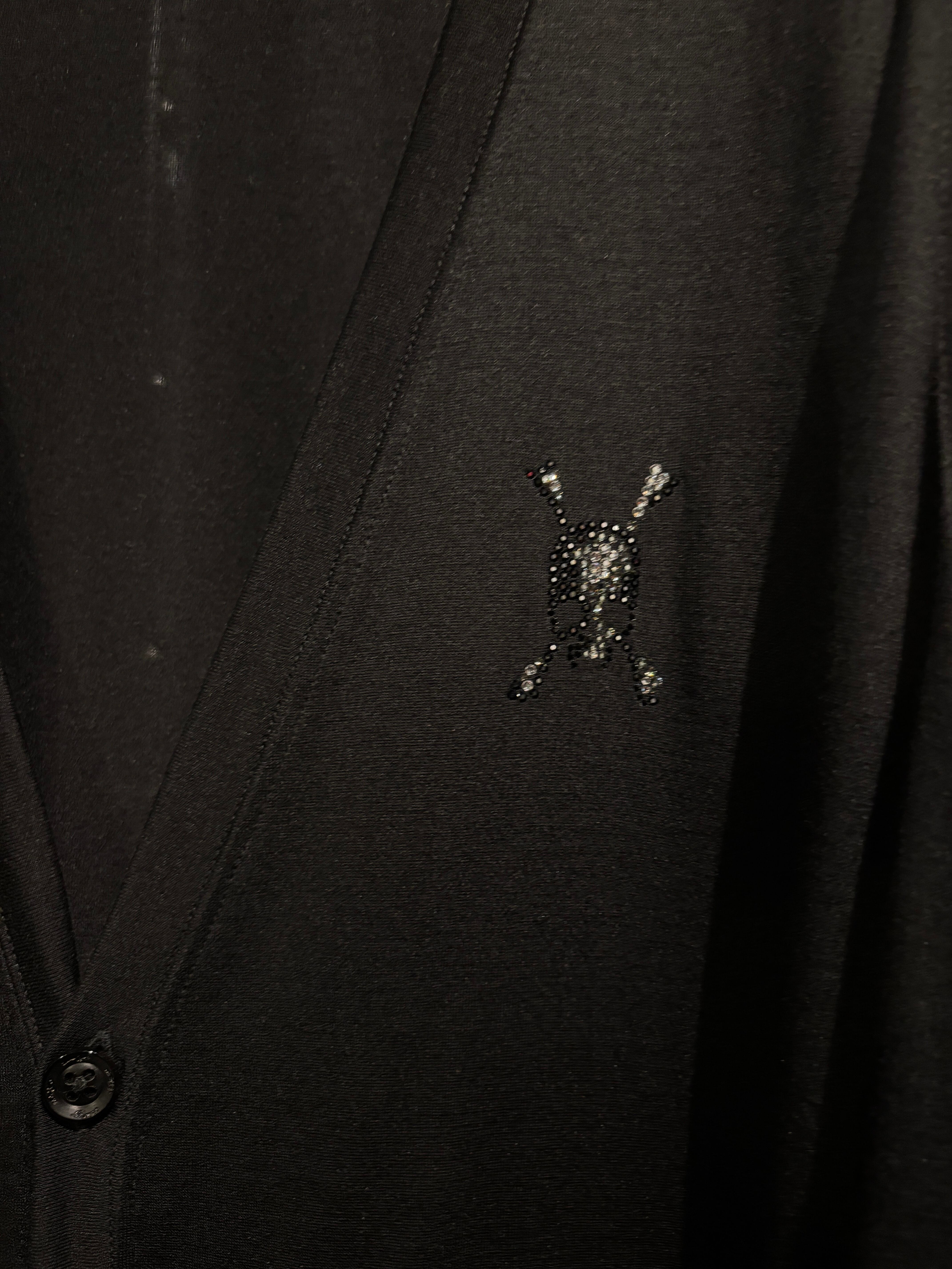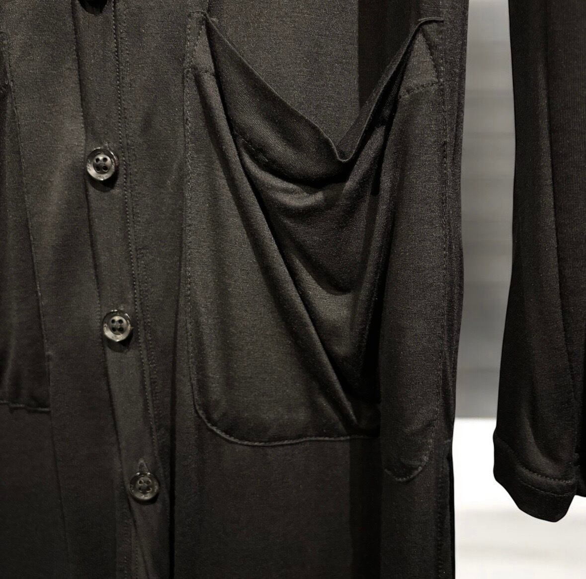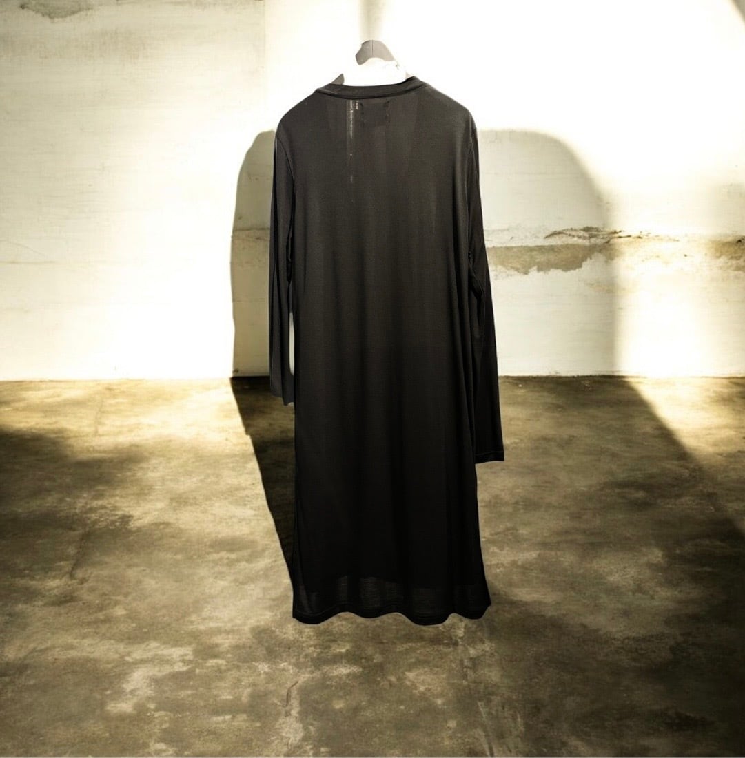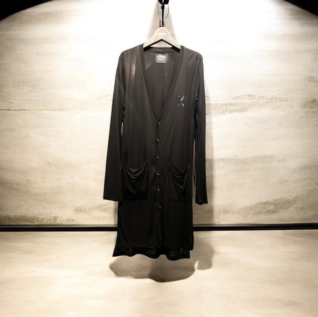 シンプルなテンセル/キュプラ黒無地タイプのさらっとした、チビスワロ付きロングカーディガン。