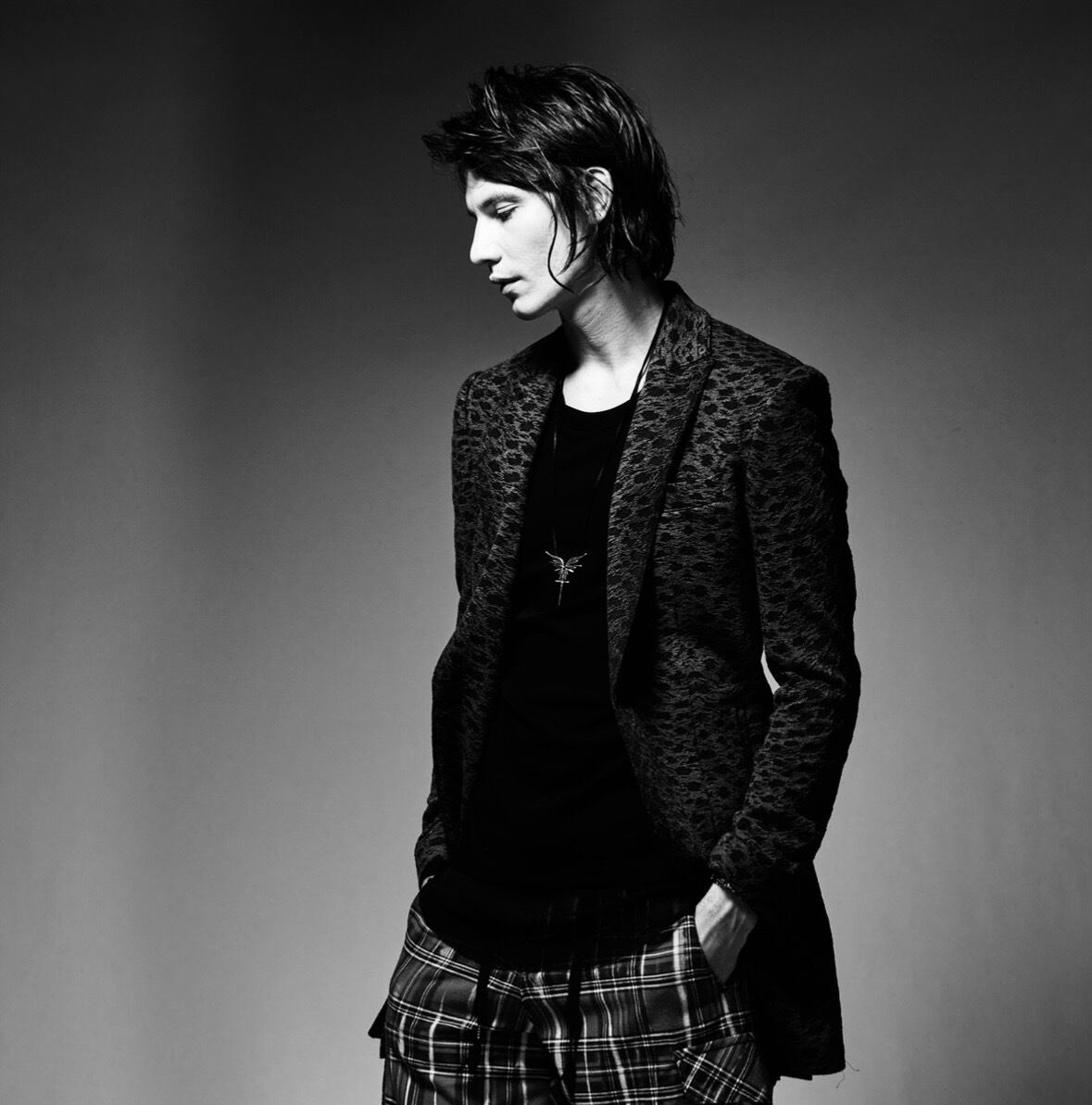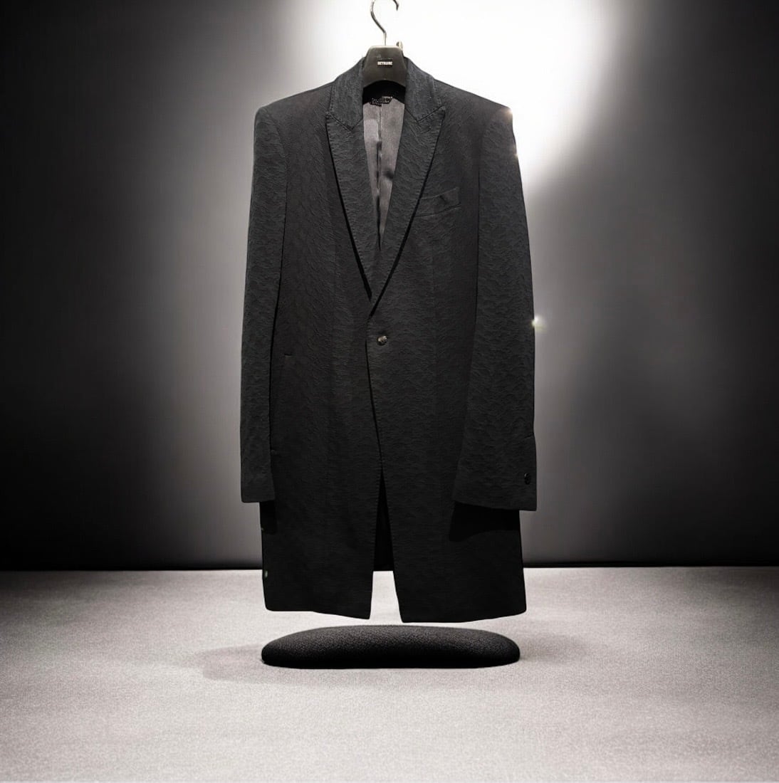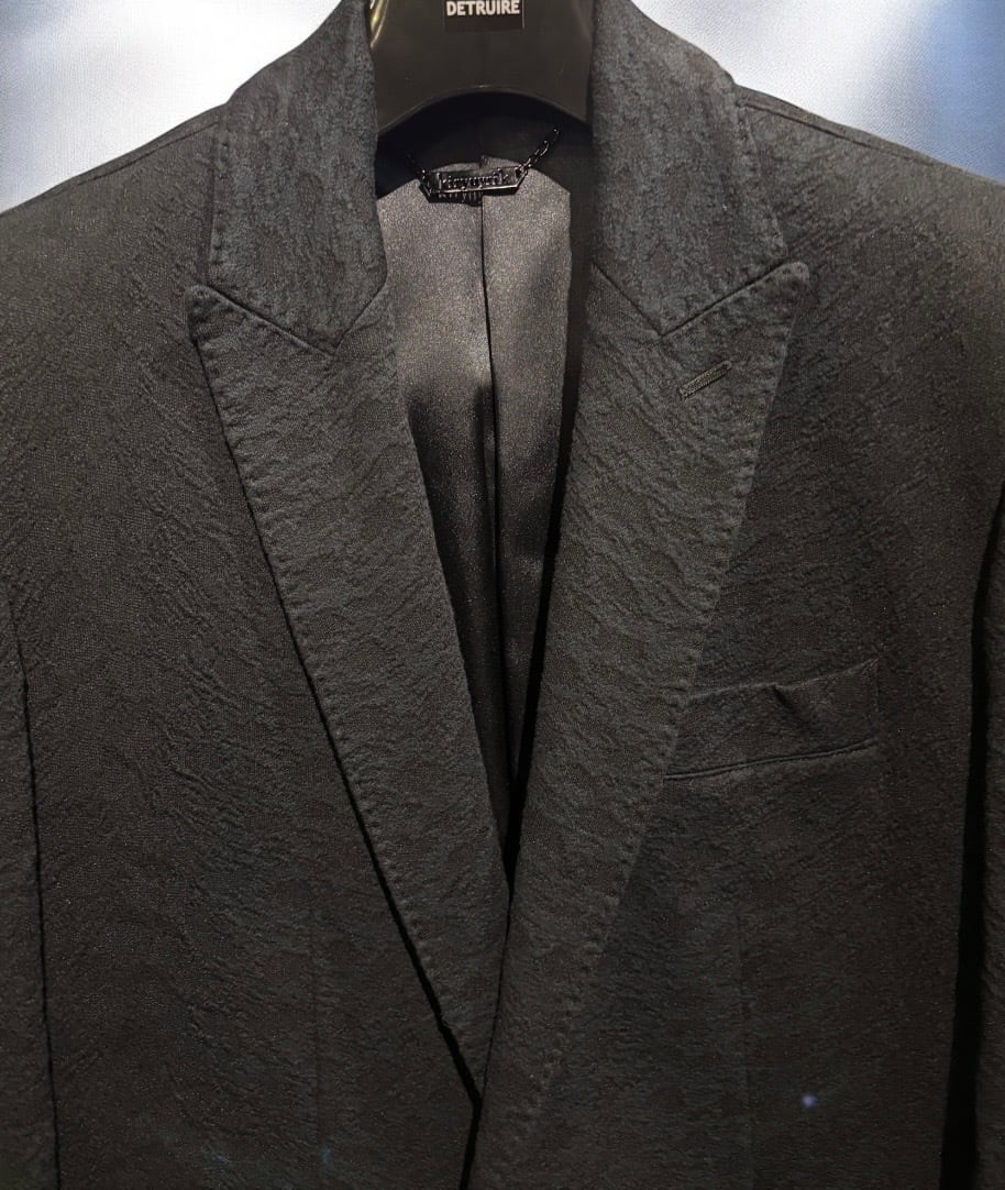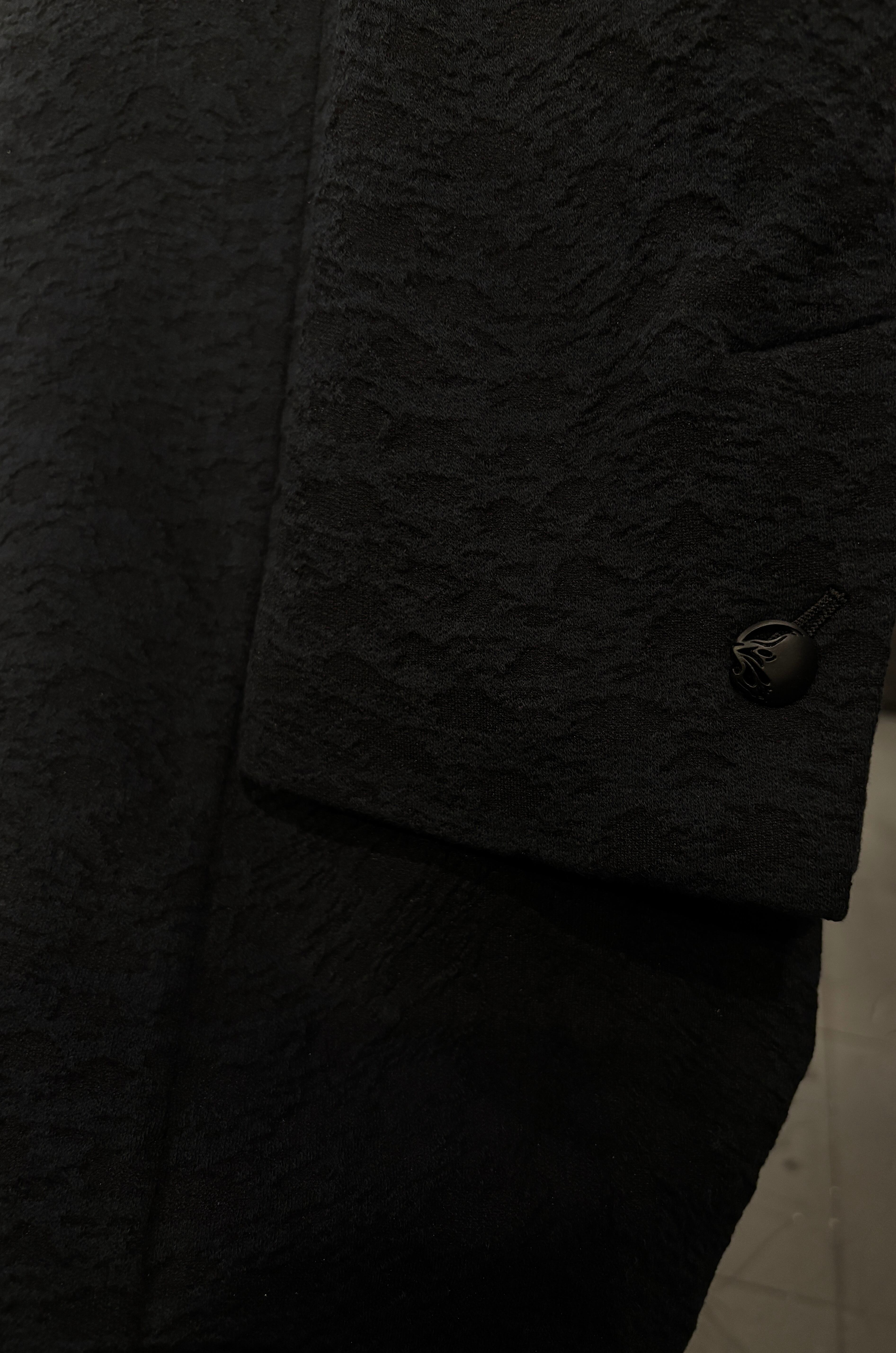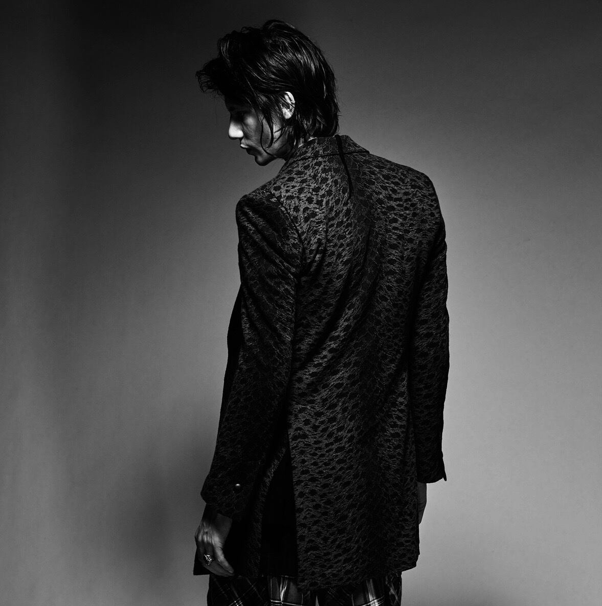 レオパードジャガード織のロングジャケット。