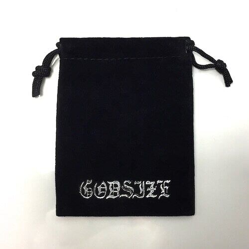 ブランドのアイデンティティを象徴する「GODSIZE」の刻印を施したラウンドタグ、そしてエンドパーツに配されたミニマルなパドロック。その一つひとつが、単なる装飾を超えた存在感を放ちます。