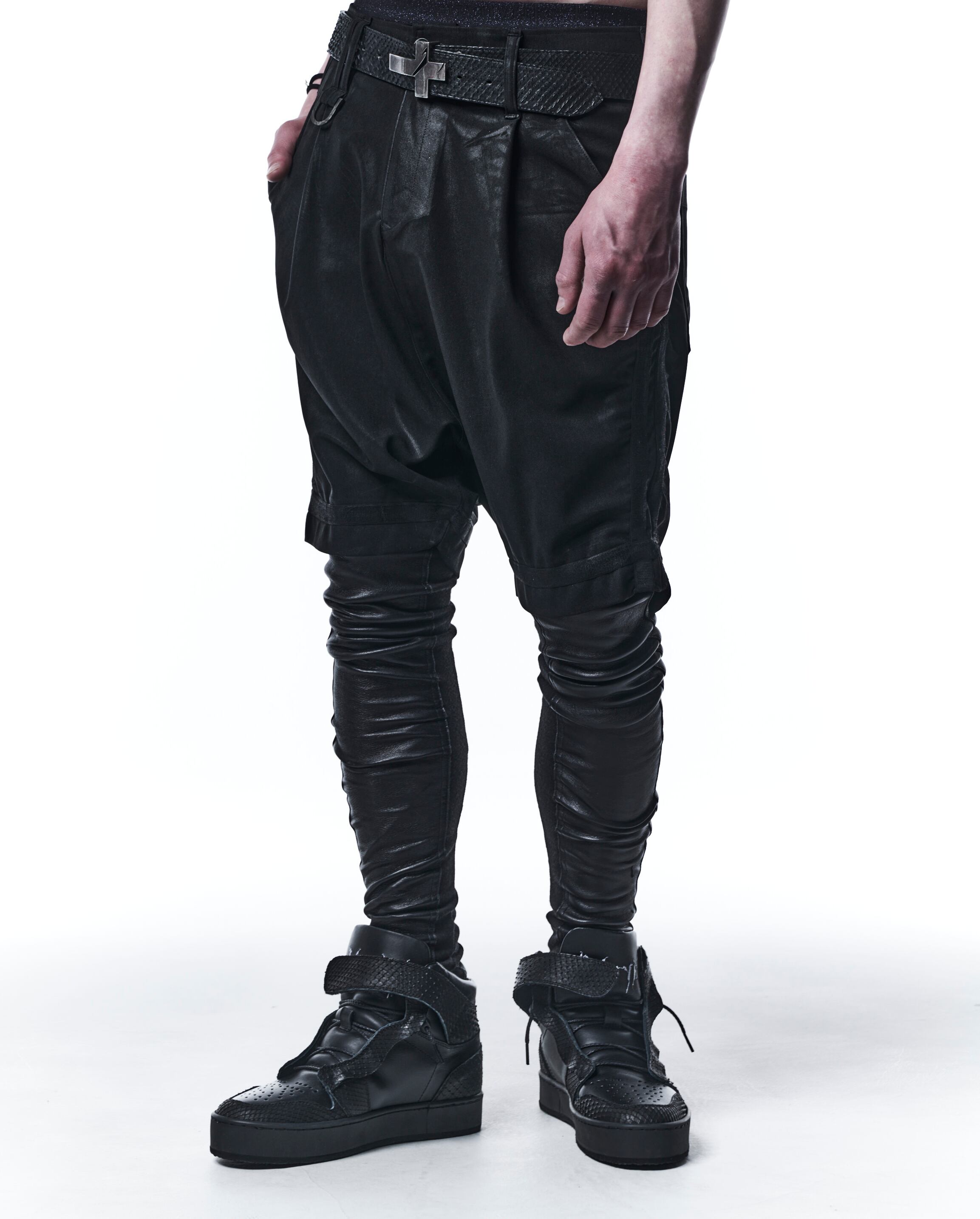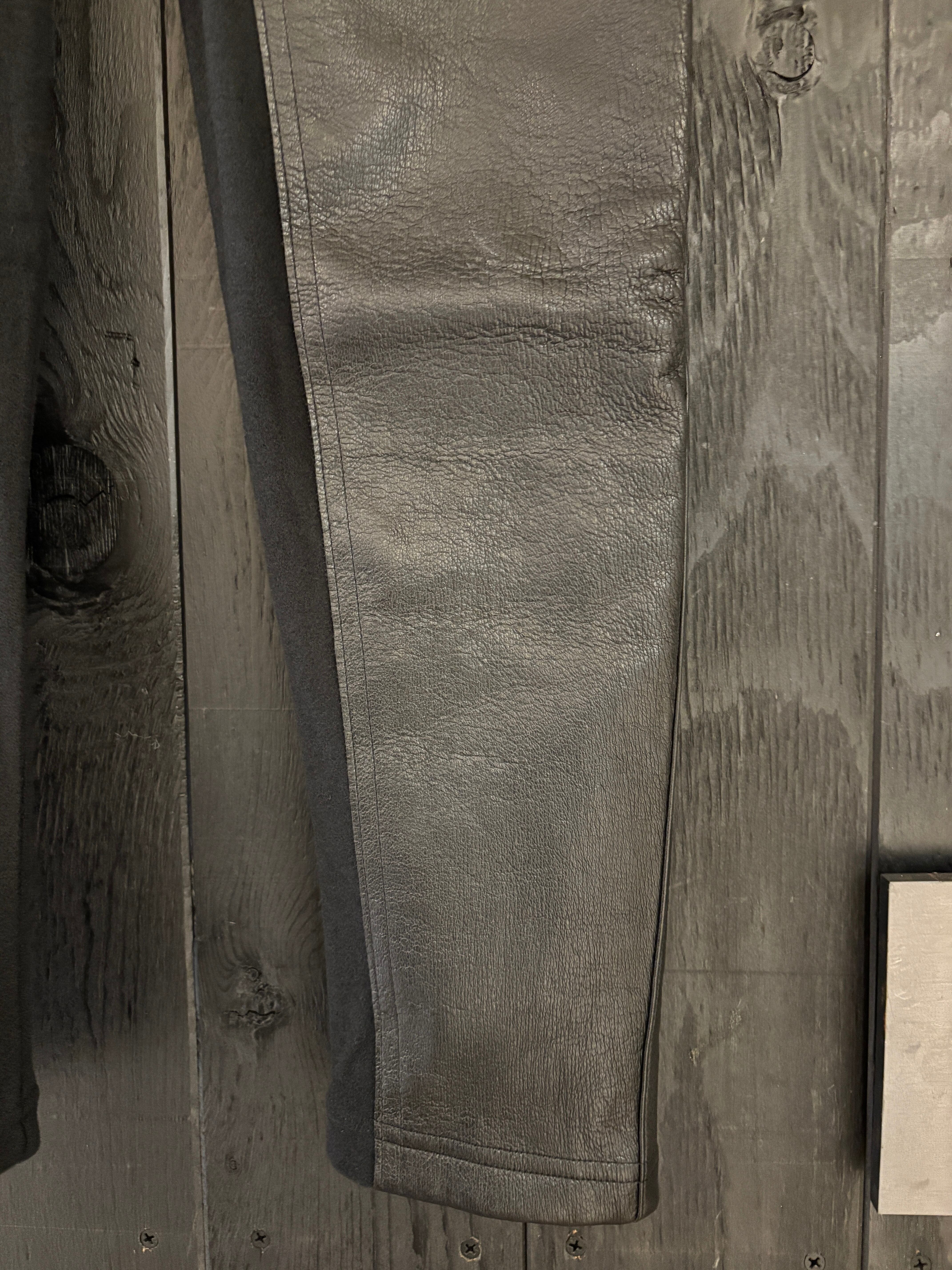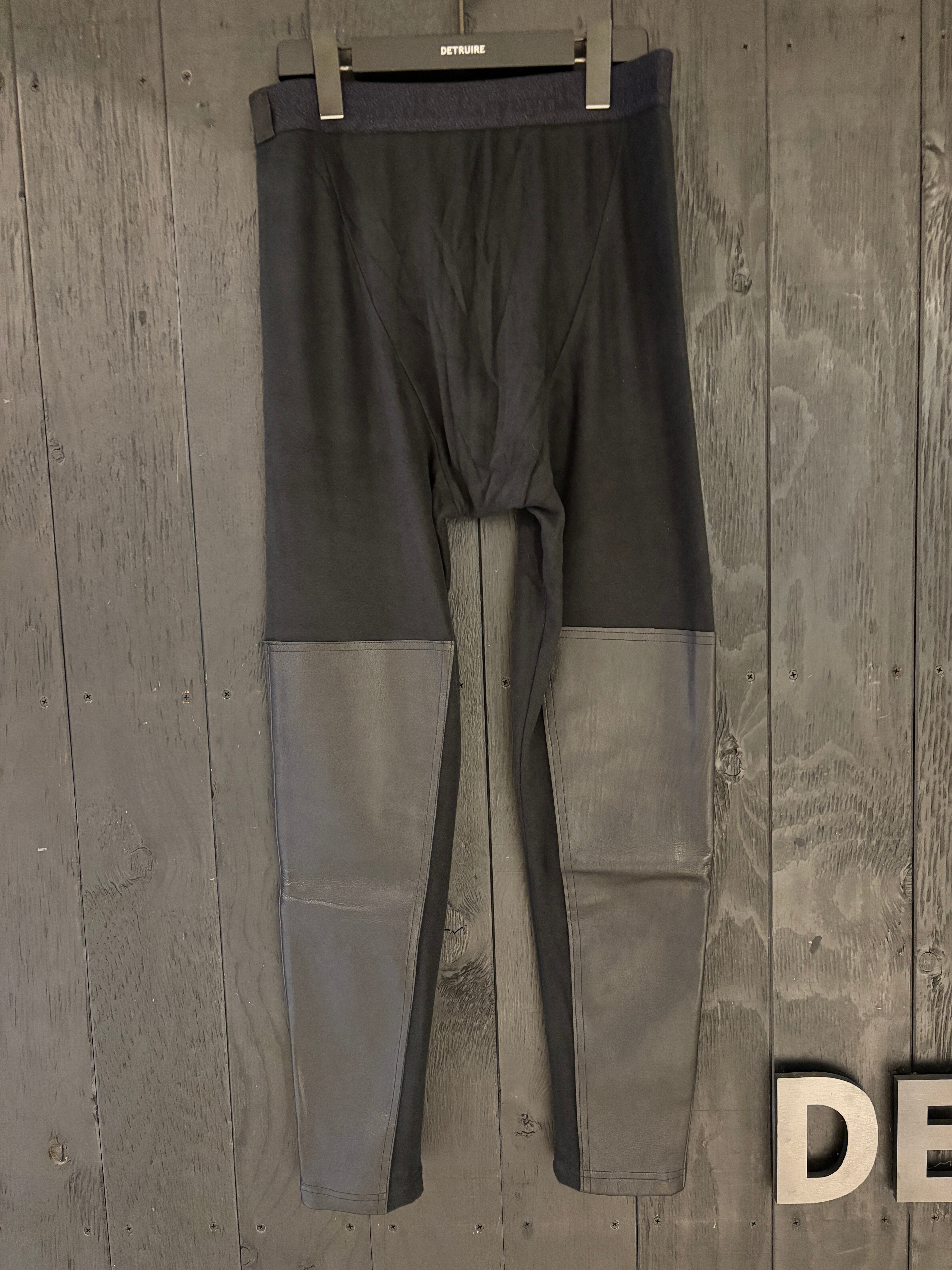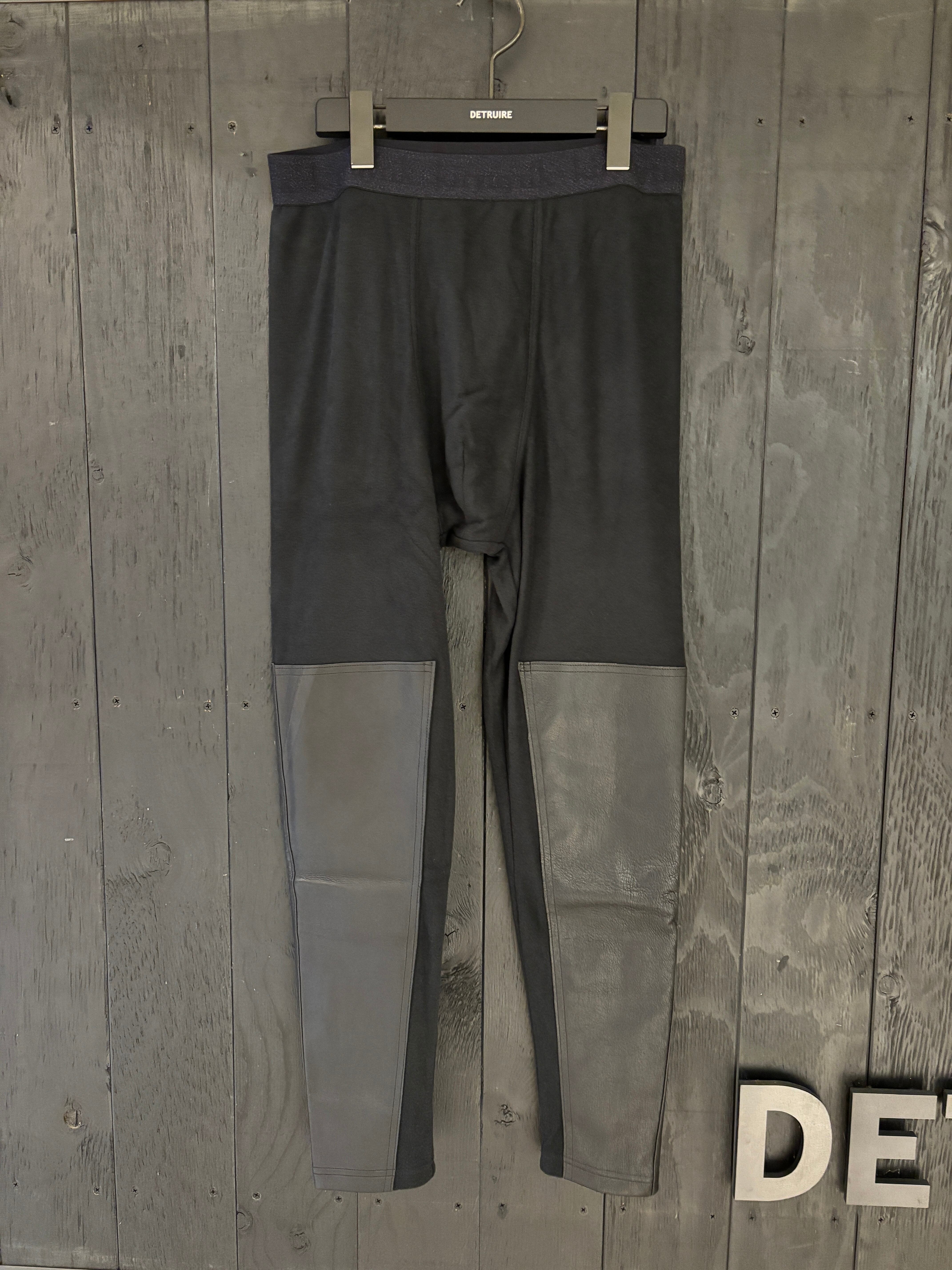 ヒートテック素材を使用したスムース起毛にDEERストレッチレザーを施したレギンス。