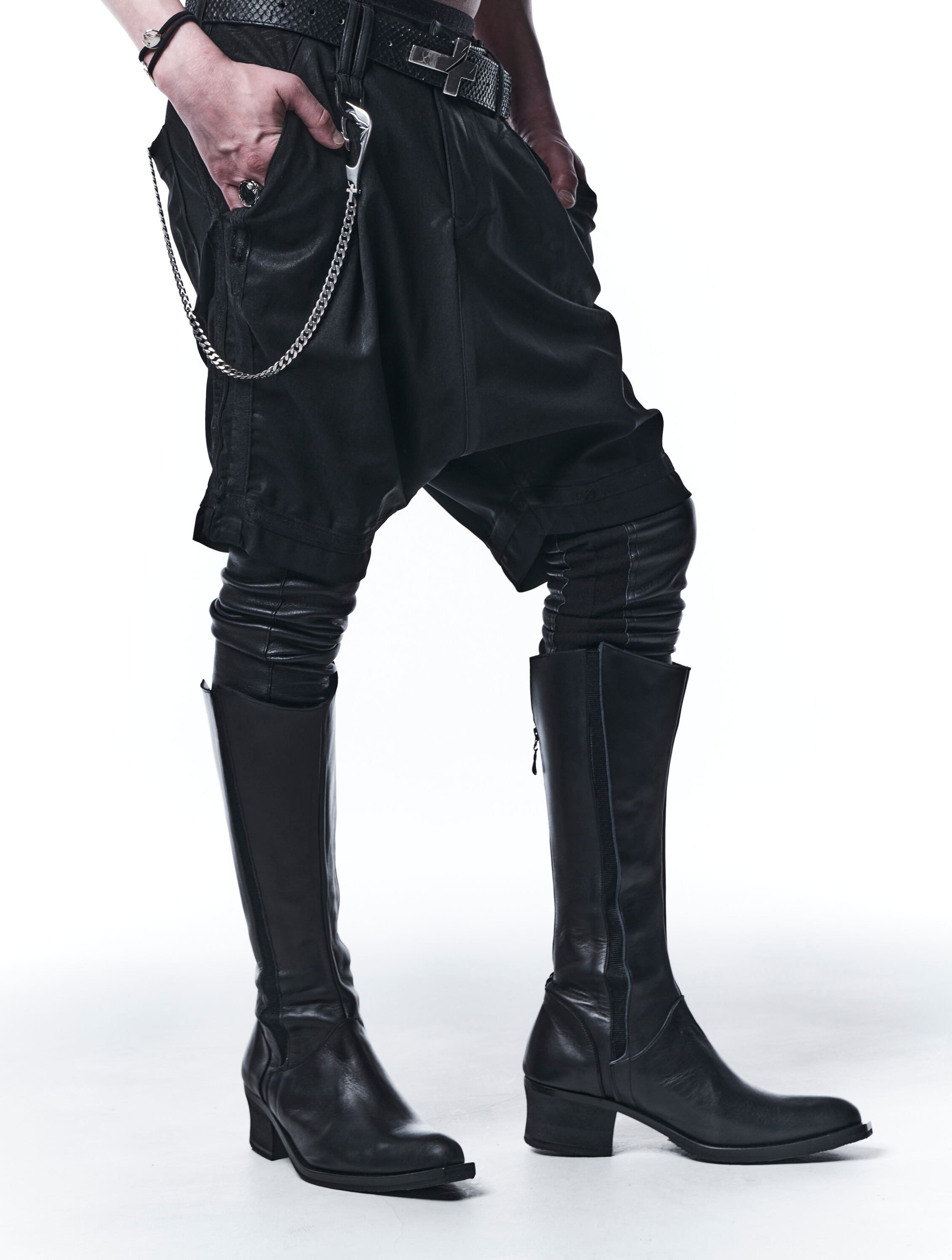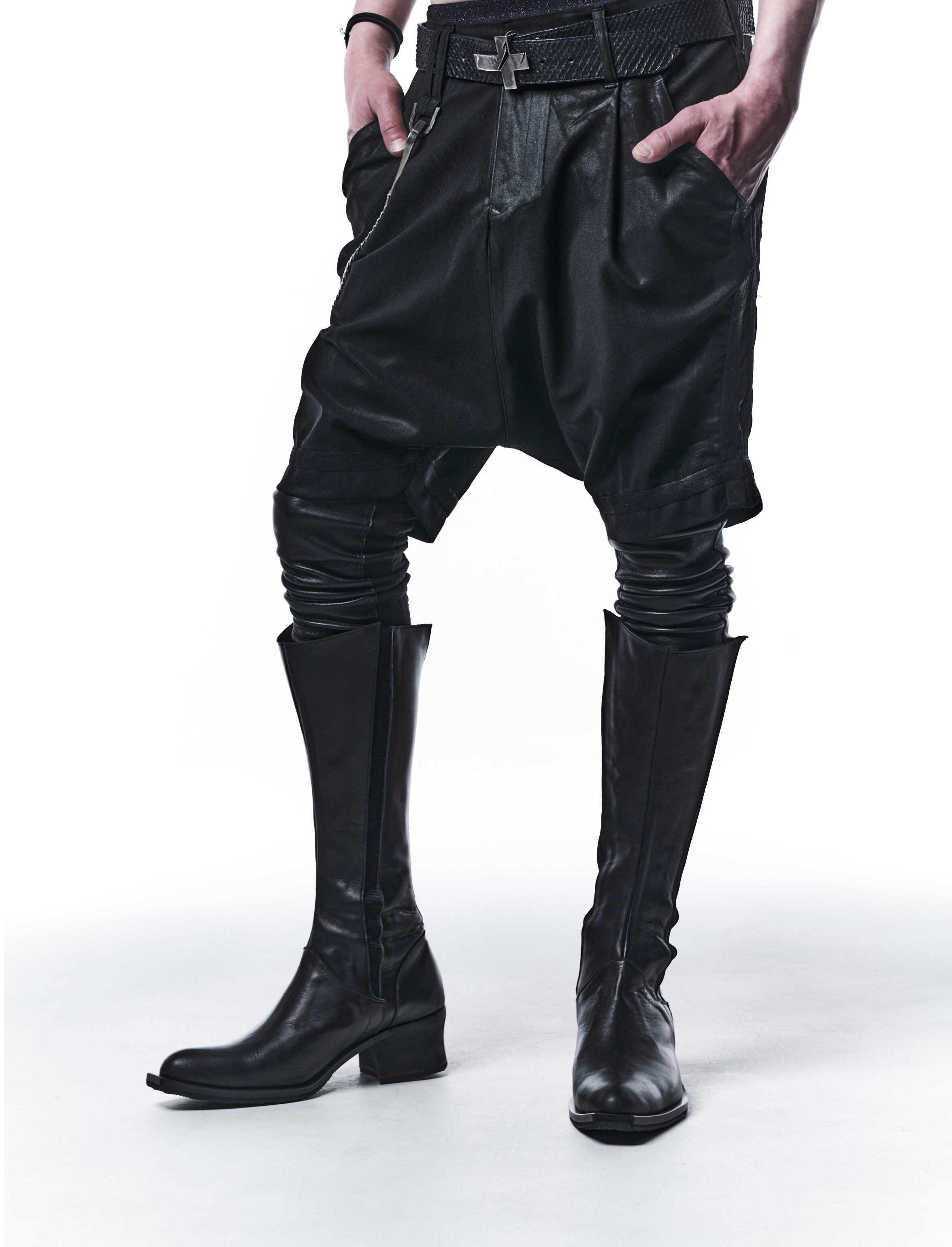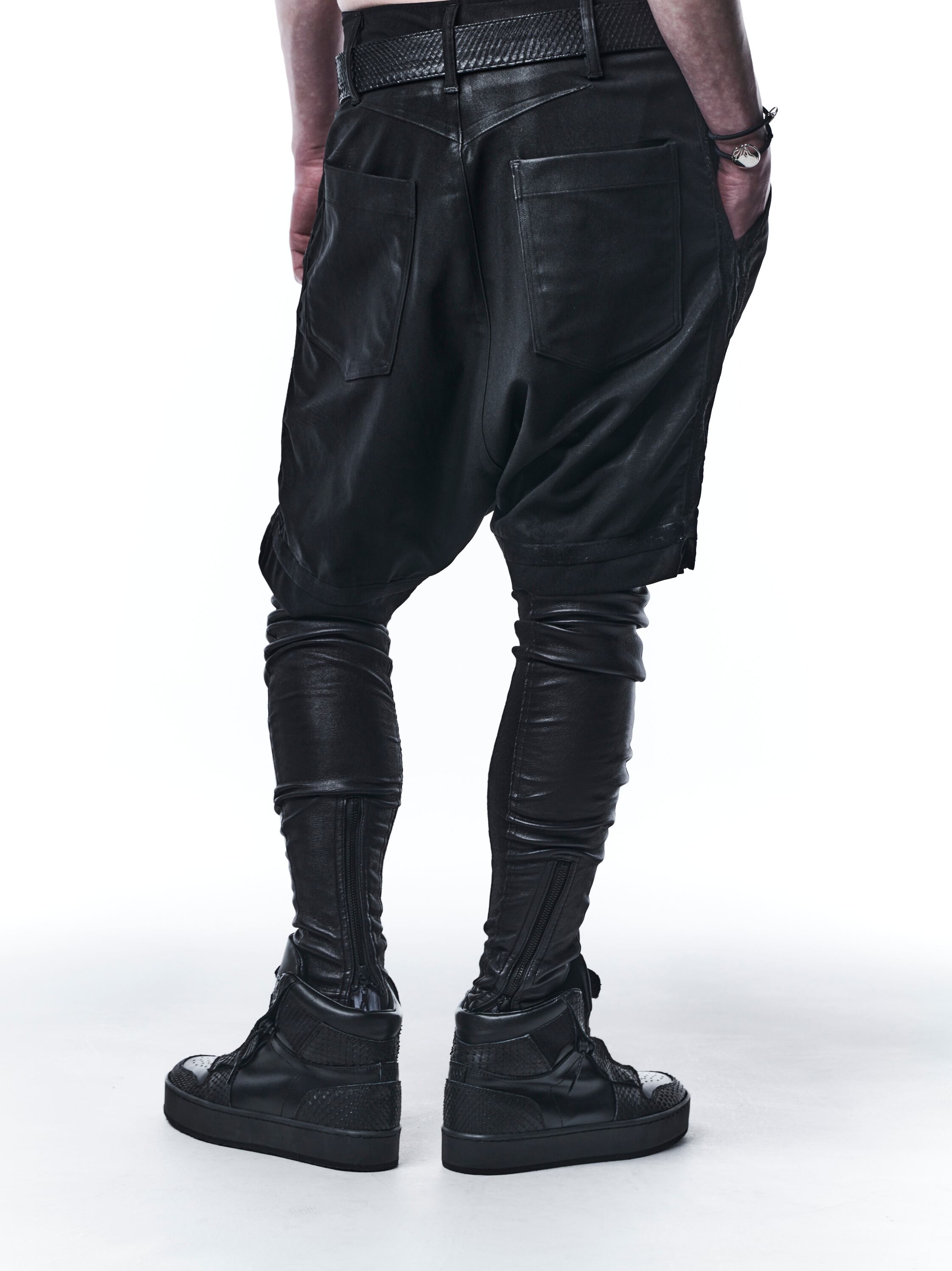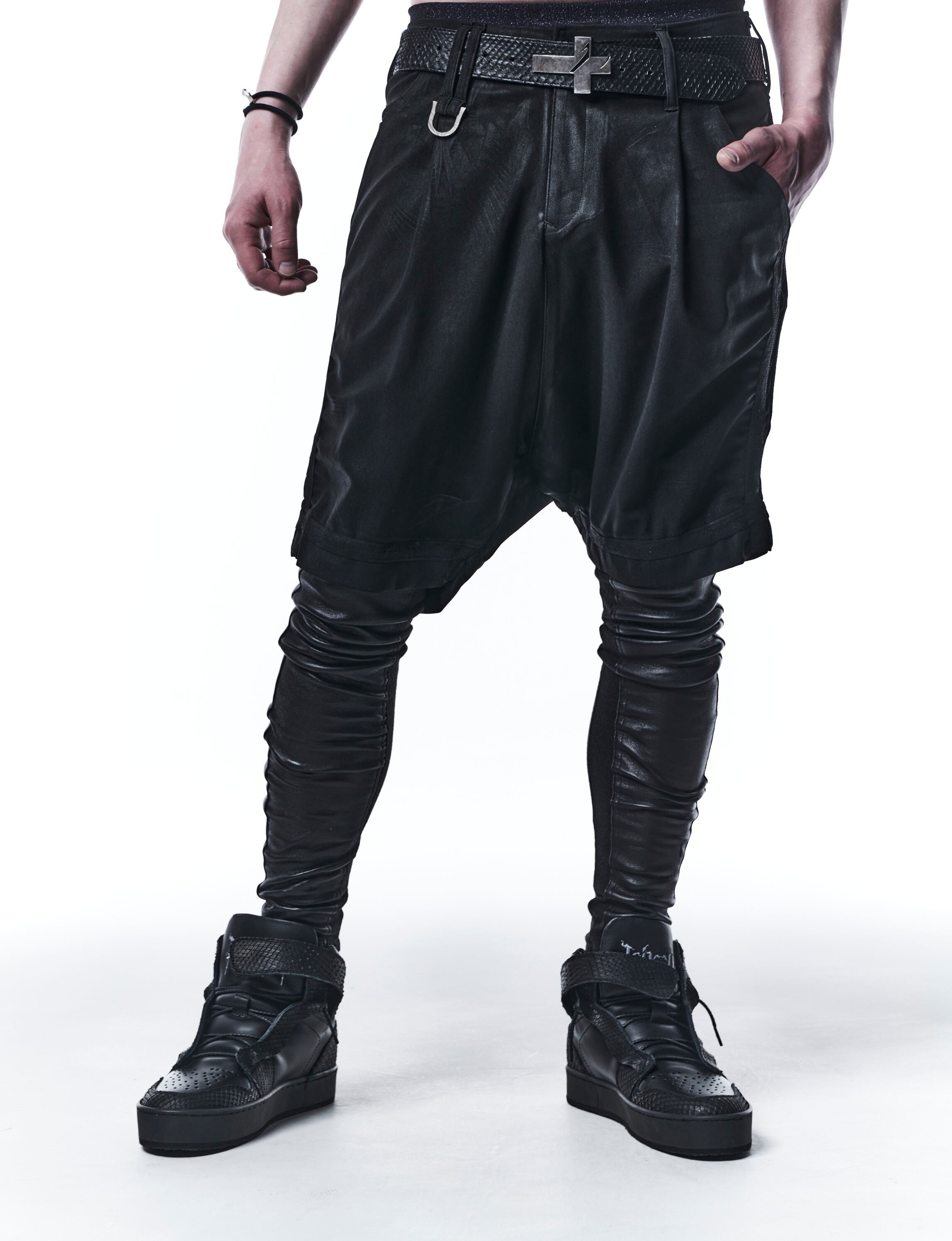 ヒートテック素材を使用したスムース起毛にDEERストレッチレザーを施したレギンス。