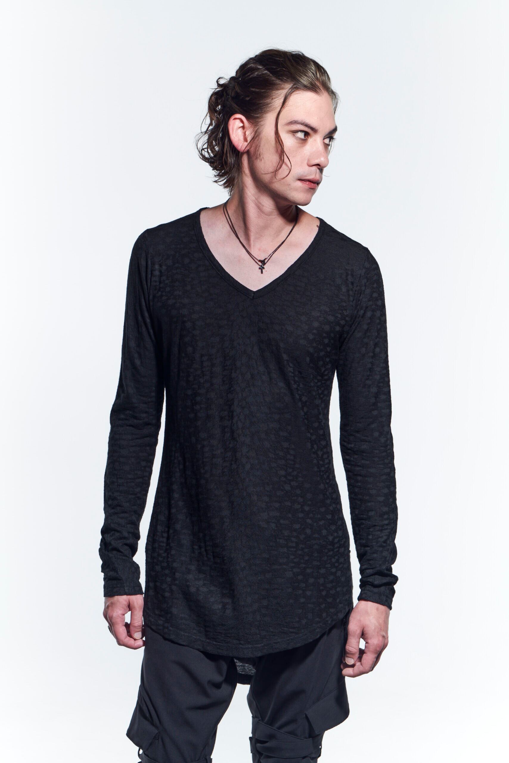レオパードジャガード素材のVネックロングスリーブ