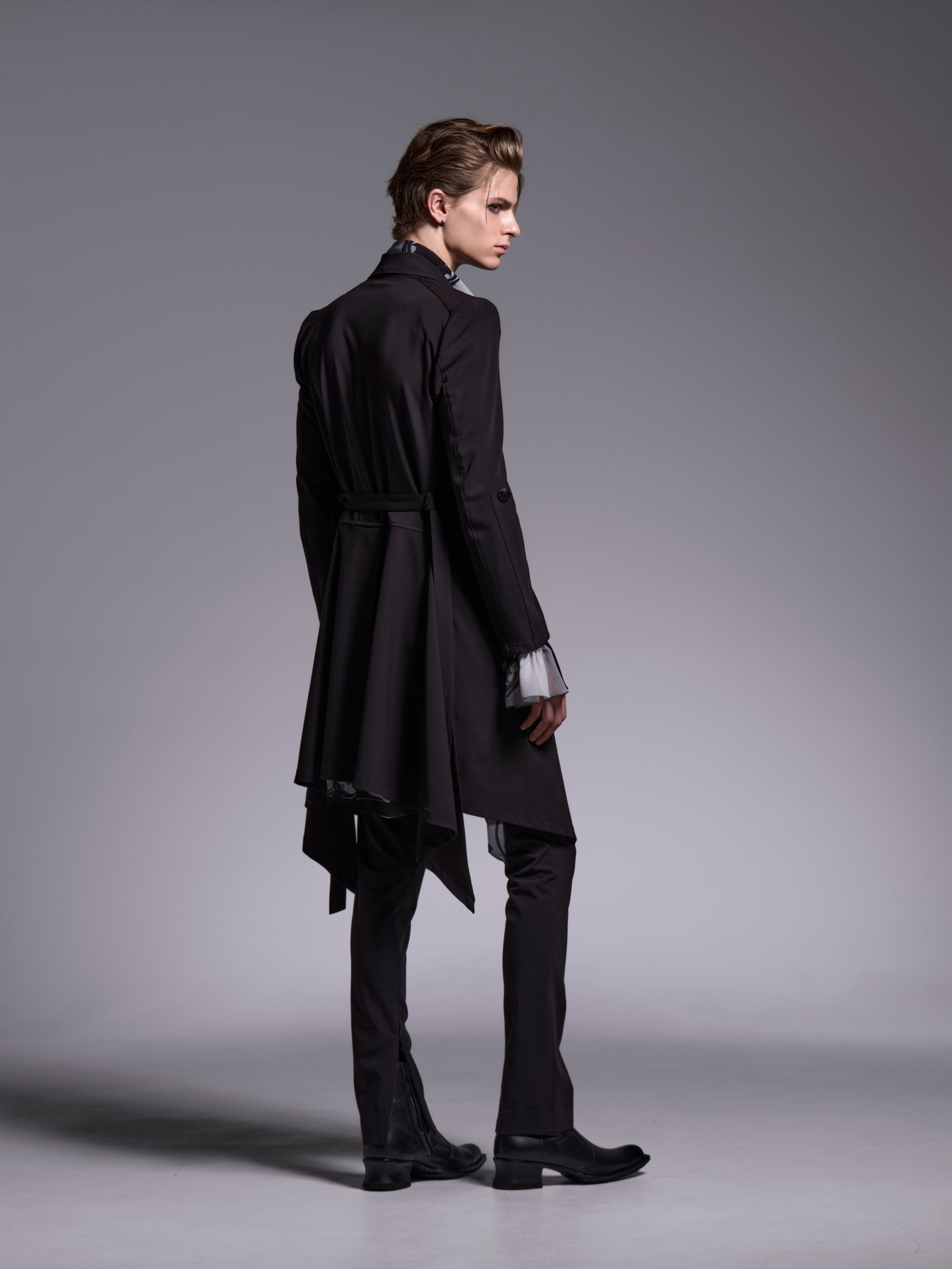 腰から膝上はゆったりと膝下からタイトなメリハリのあるシルエット
