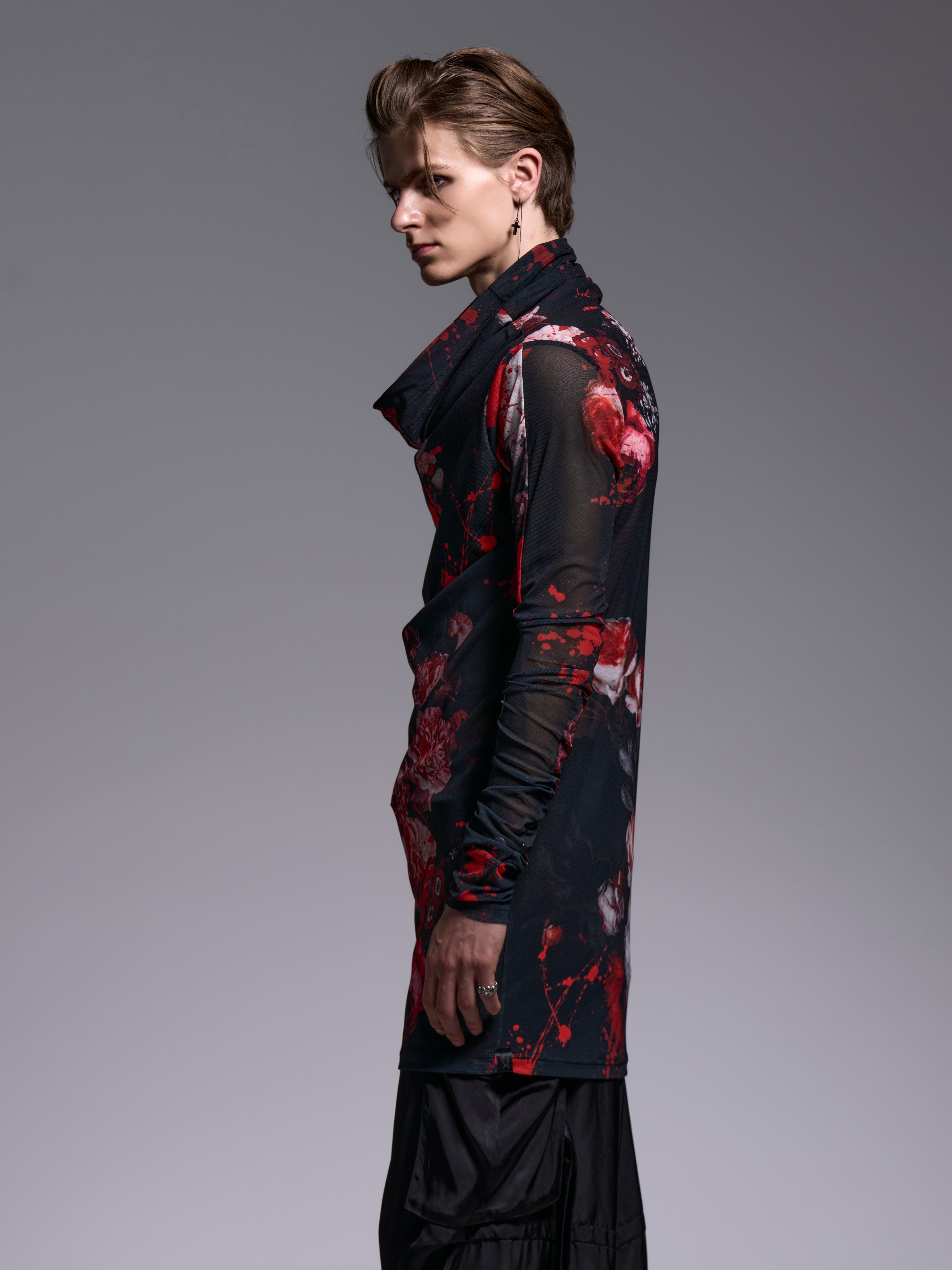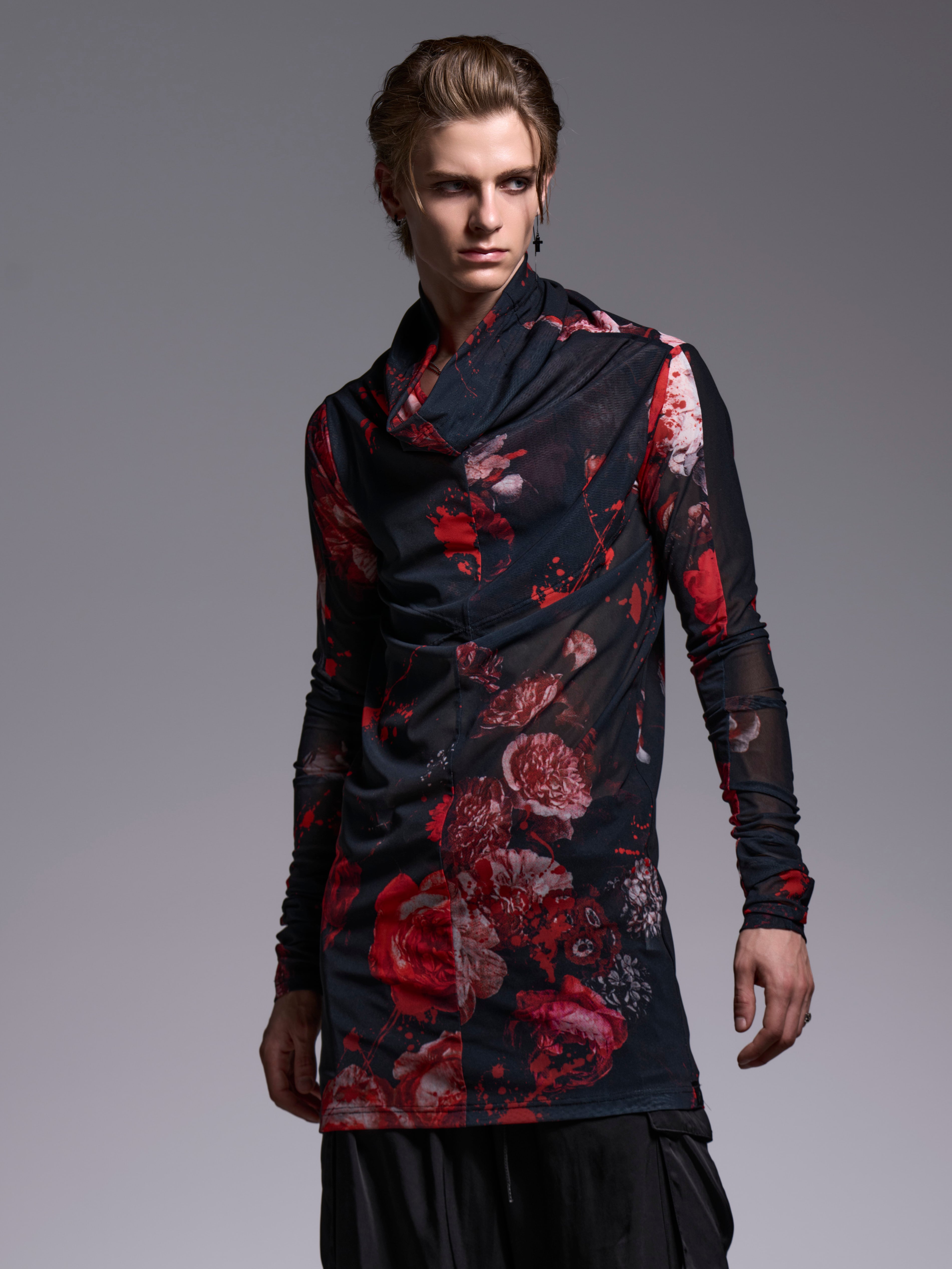 フローラ柄メッシュ素材のルーズタートルネック。