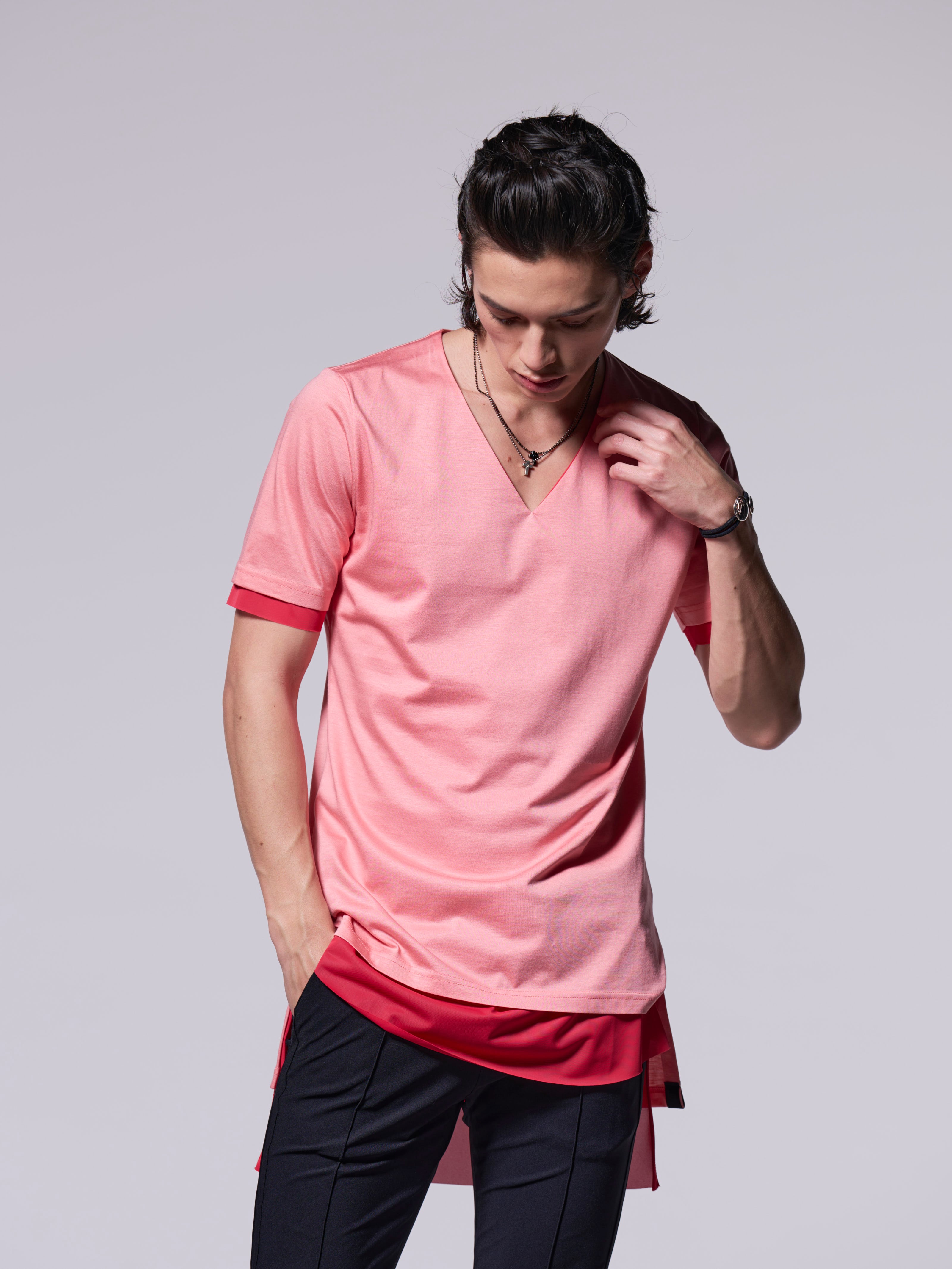 Layered T-Shirt (Pink×Red)