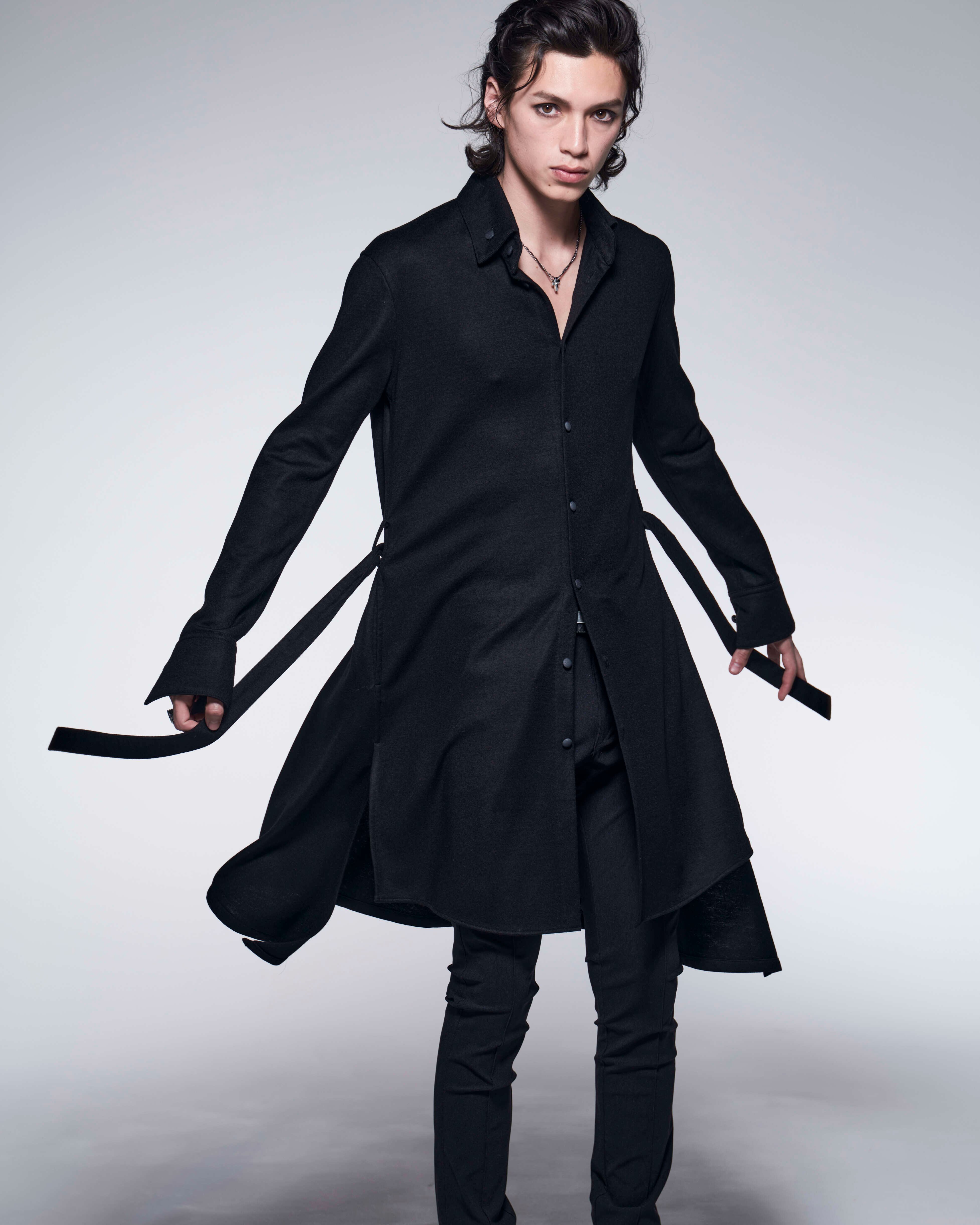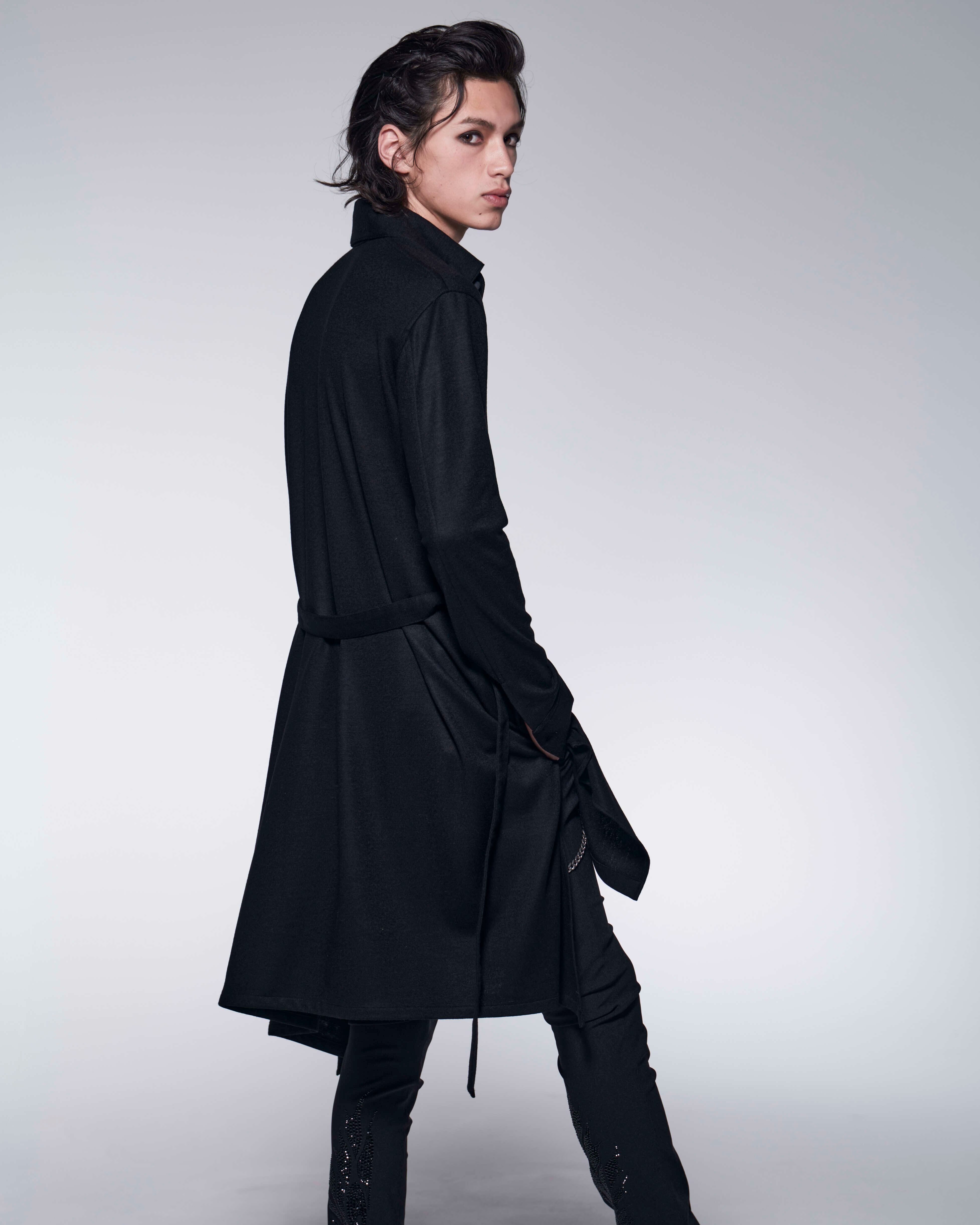 Shrink Wool Jersey Flare Shirt (BK)
