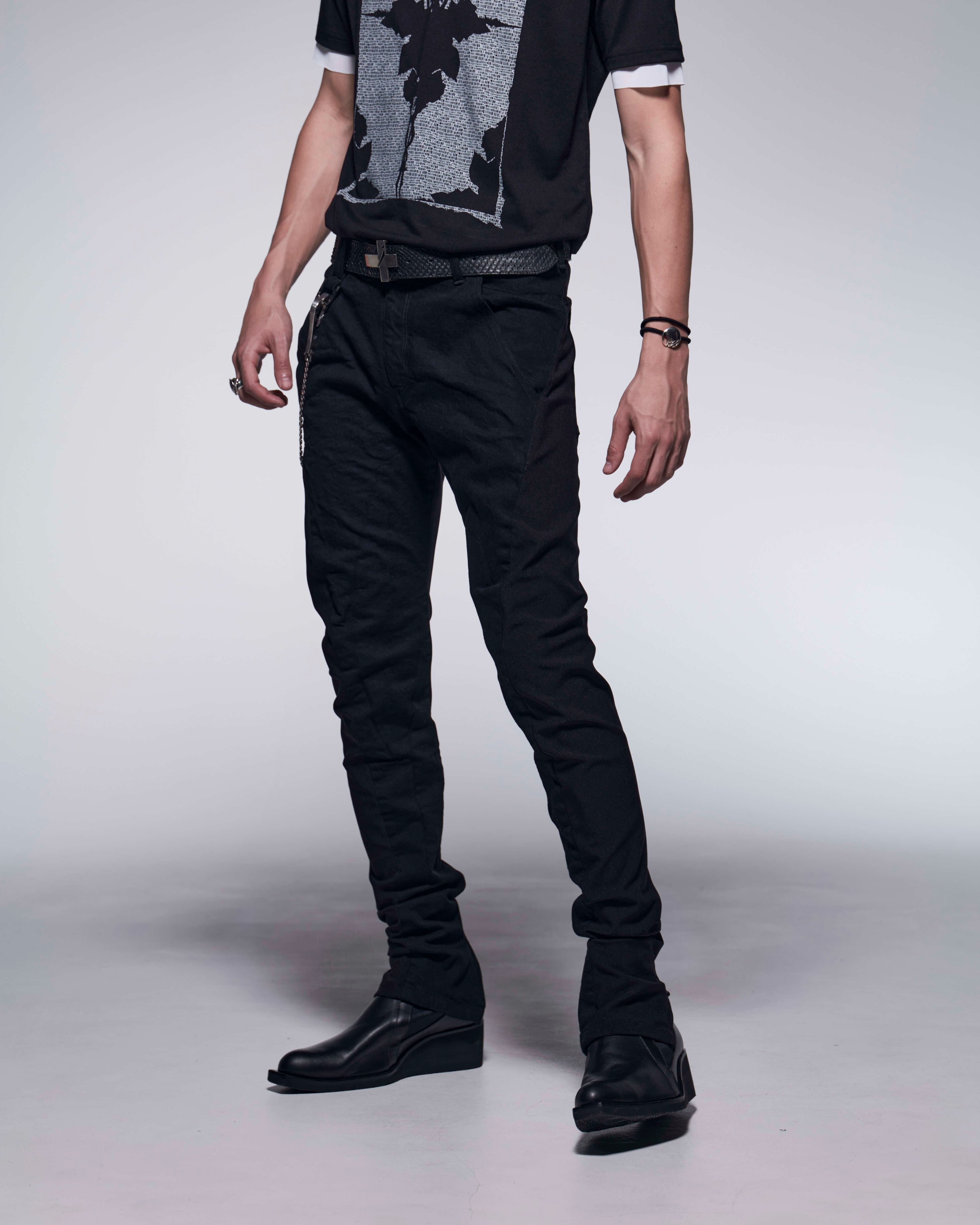 #黒ツイルジャージのコンビネーションカーブパンツ。
