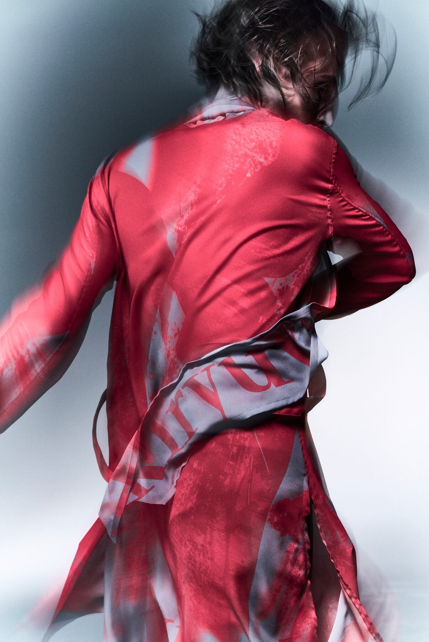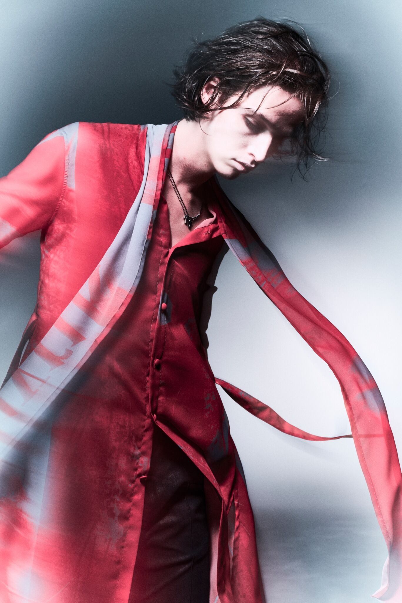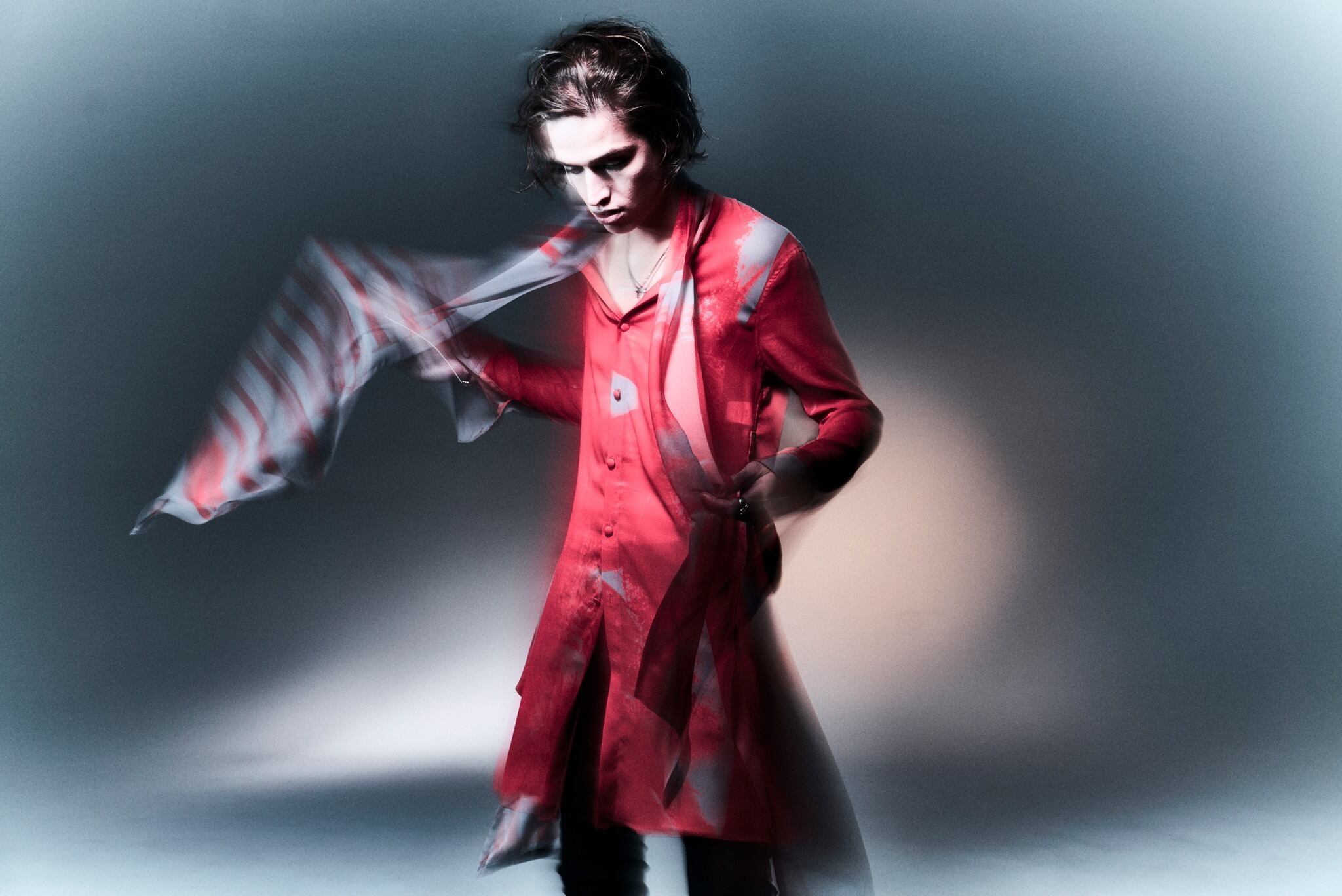 細幅ストールの付いたロングシャツ。
