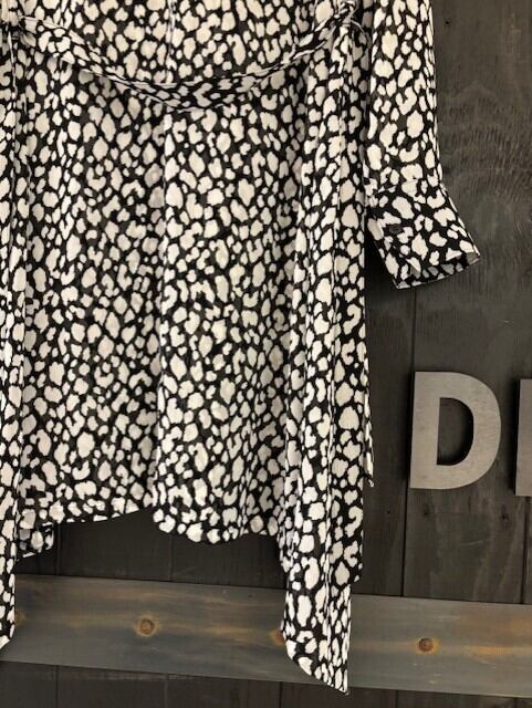 楊柳素材のレオパード柄フレアーシャツ。
