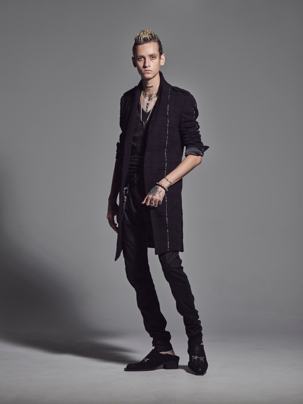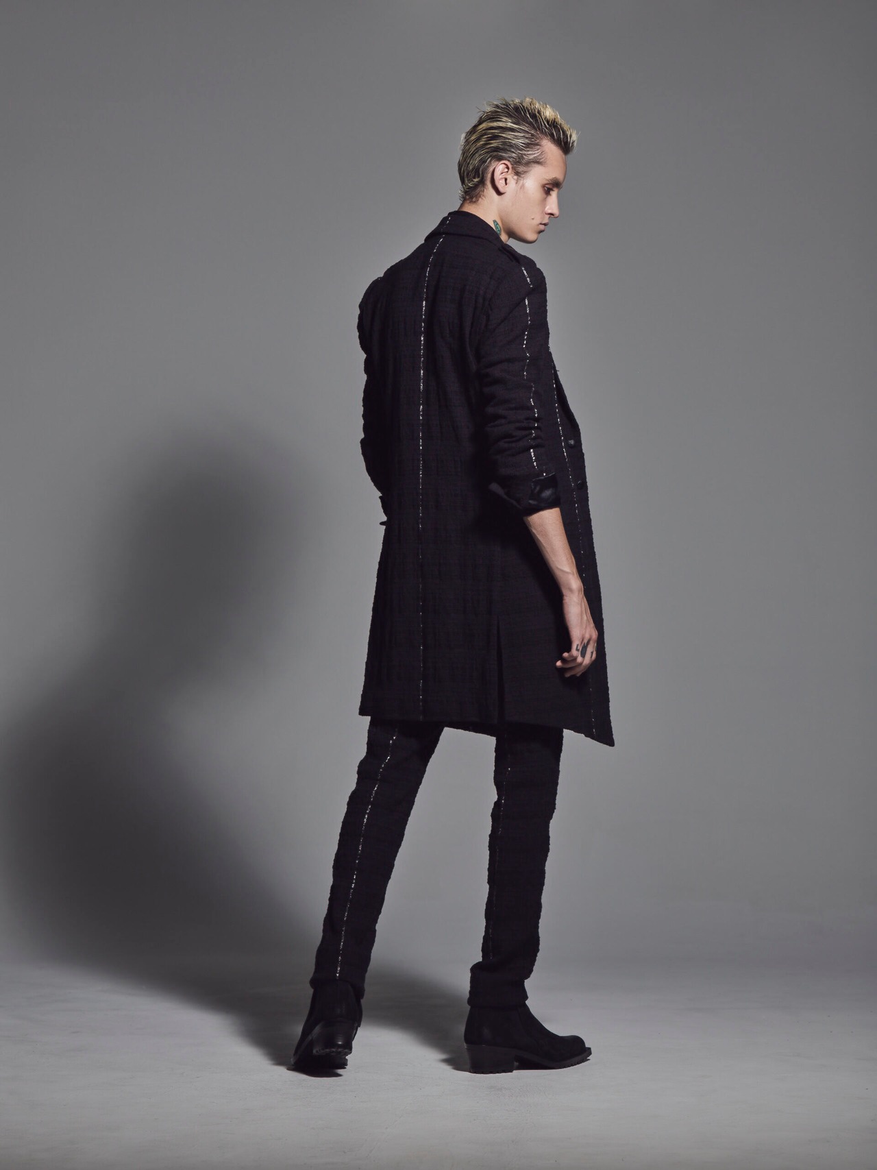 型は定番のロングジャケット。