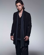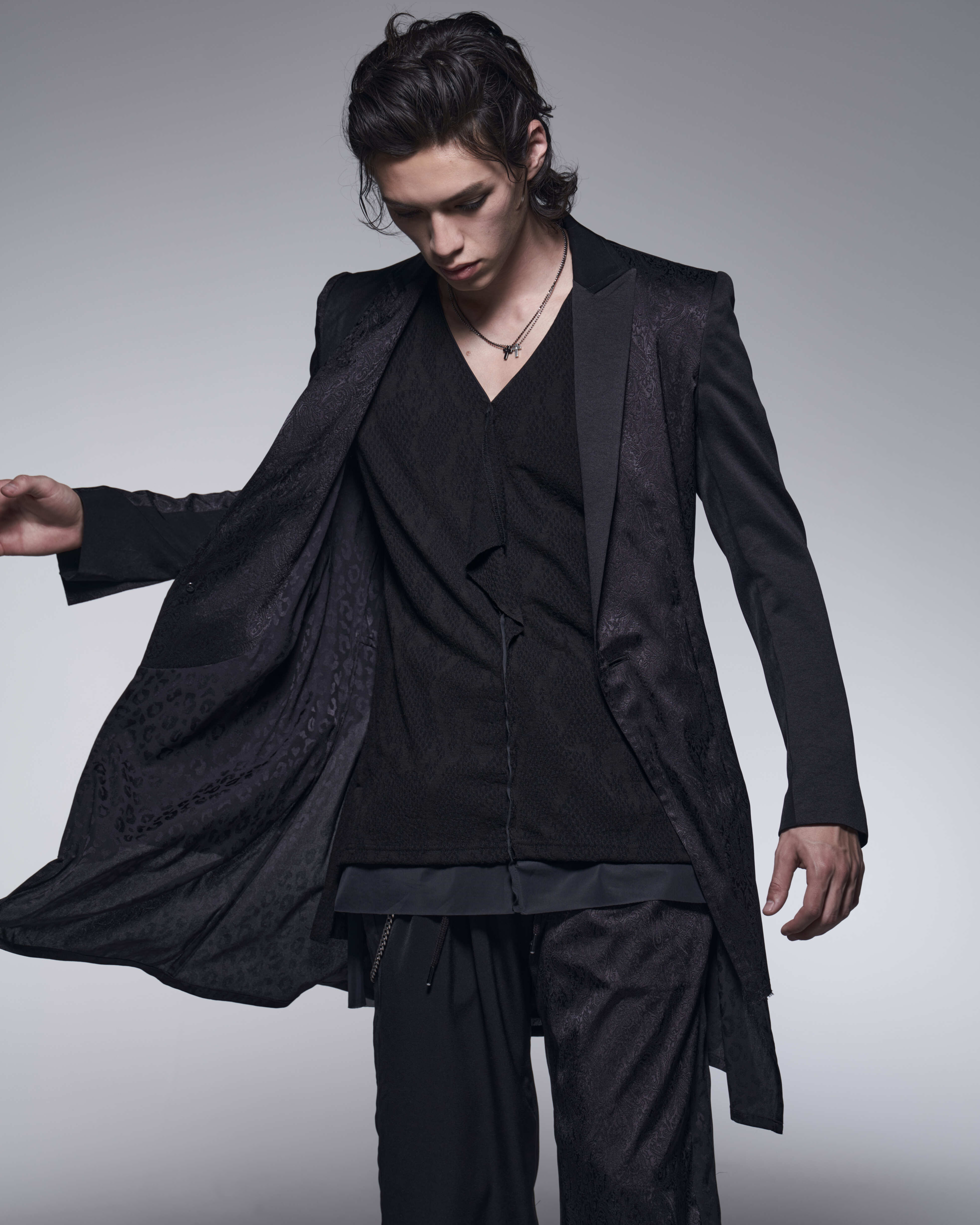 上身頃は、生地組織の凹凸で表現したパイソン柄の黒色ジャージ。
