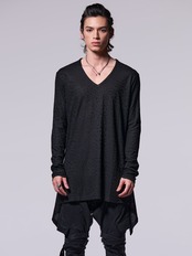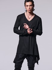 VネックフレアスリットTシャツ。