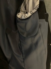 また、裏地には蓄熱保温効果により衣服内温度の上昇を促進する防寒機能素材の赤外線吸収裏地を使用してます。袖裏地はストライプ柄。脇汗止め仕様。センターベンツ仕様45,5cm