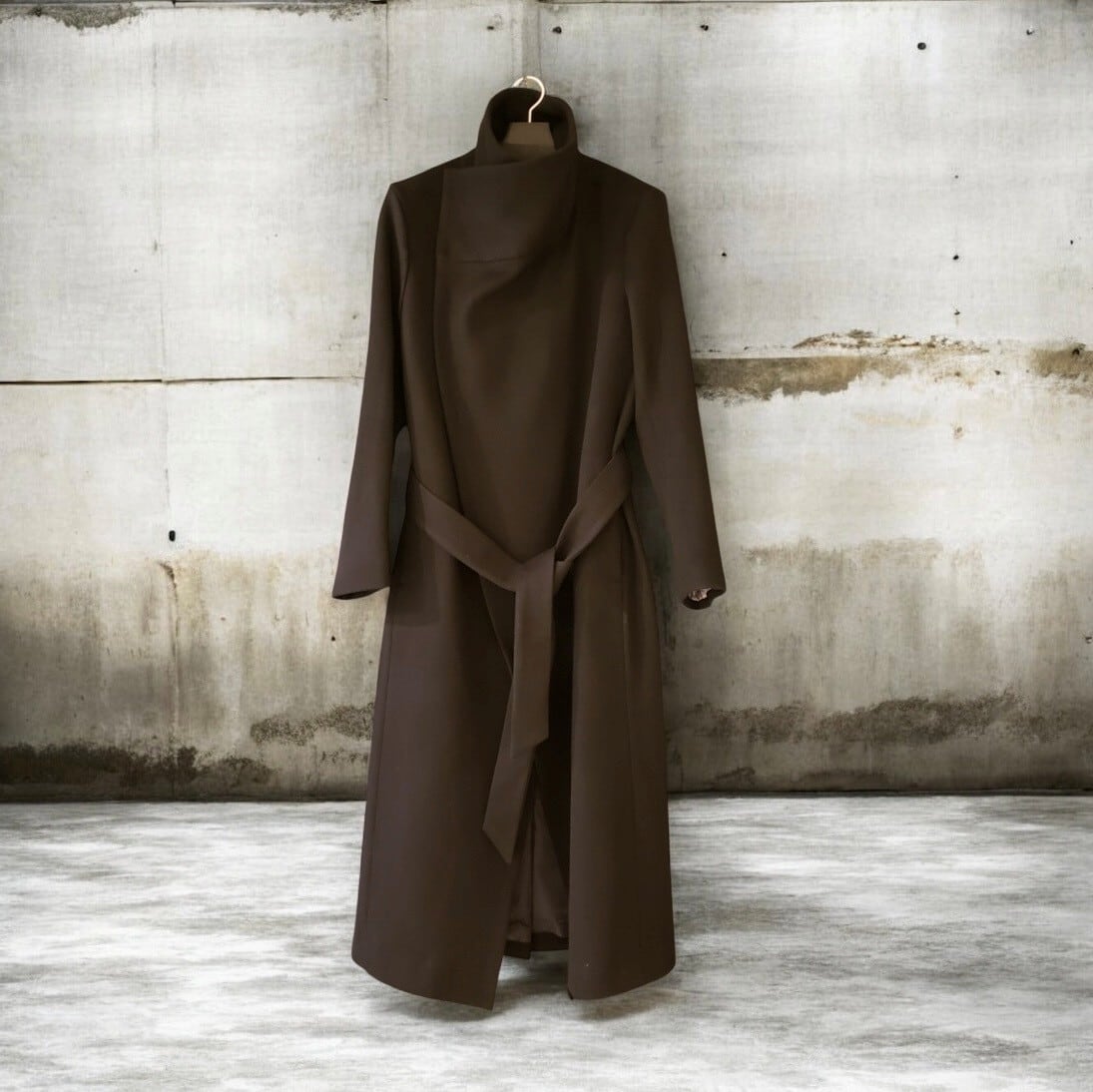Beaver Wool High collar Wrap Maxi Coat