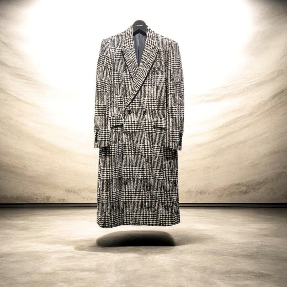 Wool/Silk Semi-double Long Check Tweed Chester Coat
