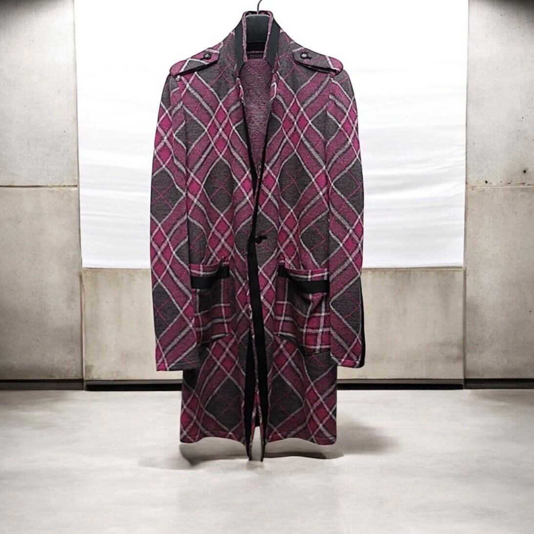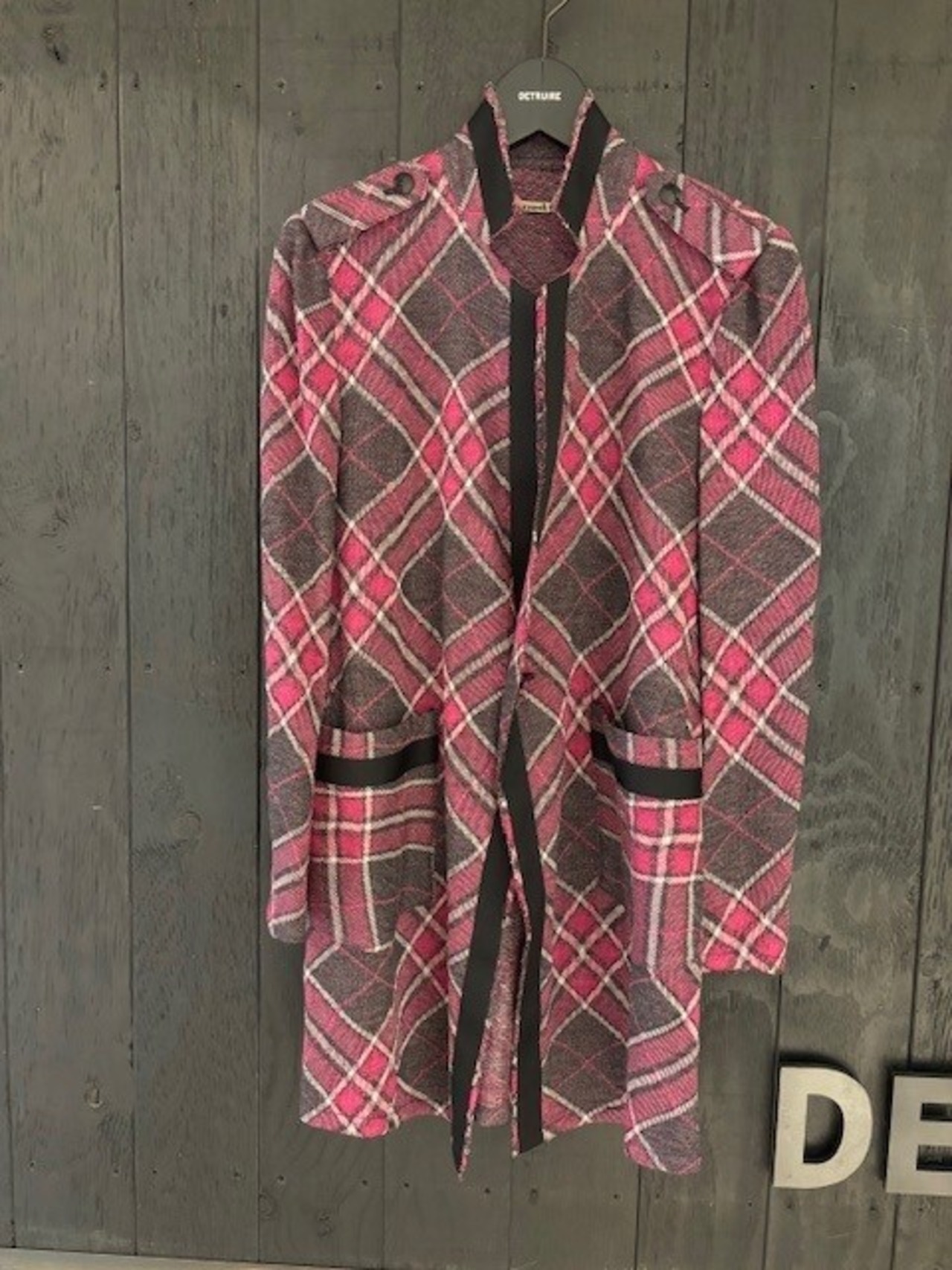 ピンク×グレーのバイアスチェック柄の一重のアンコンジャケット。