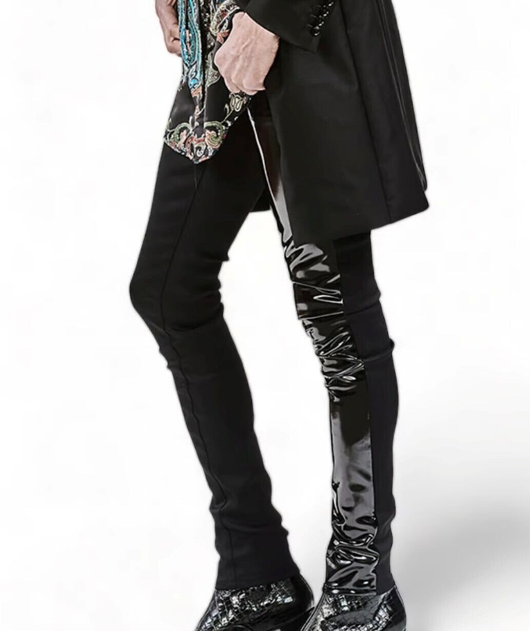 ■ Detail : フロント左側をエナメル加工を施したストレッチ素材で切替たエッジの効いたスキニーパンツです。