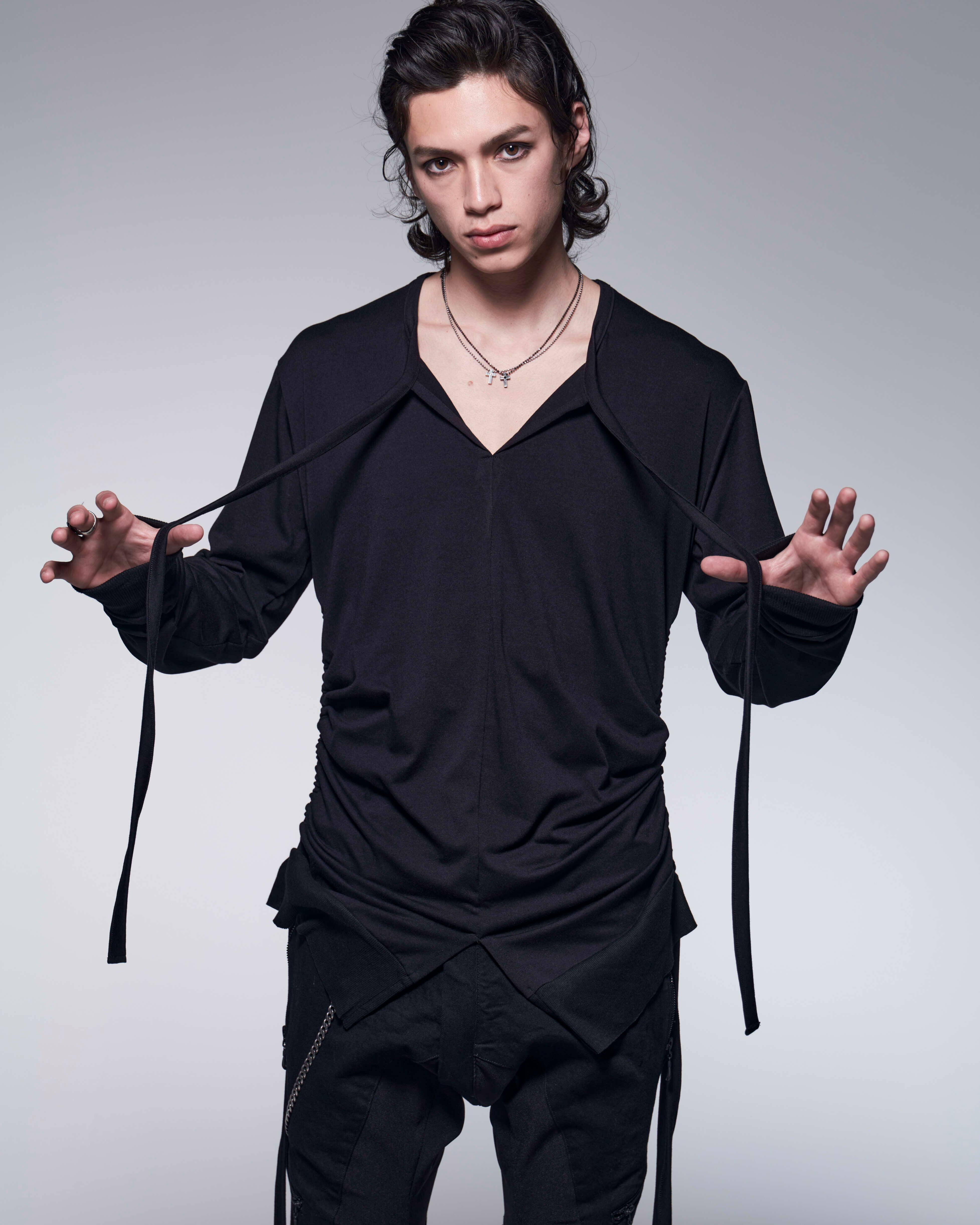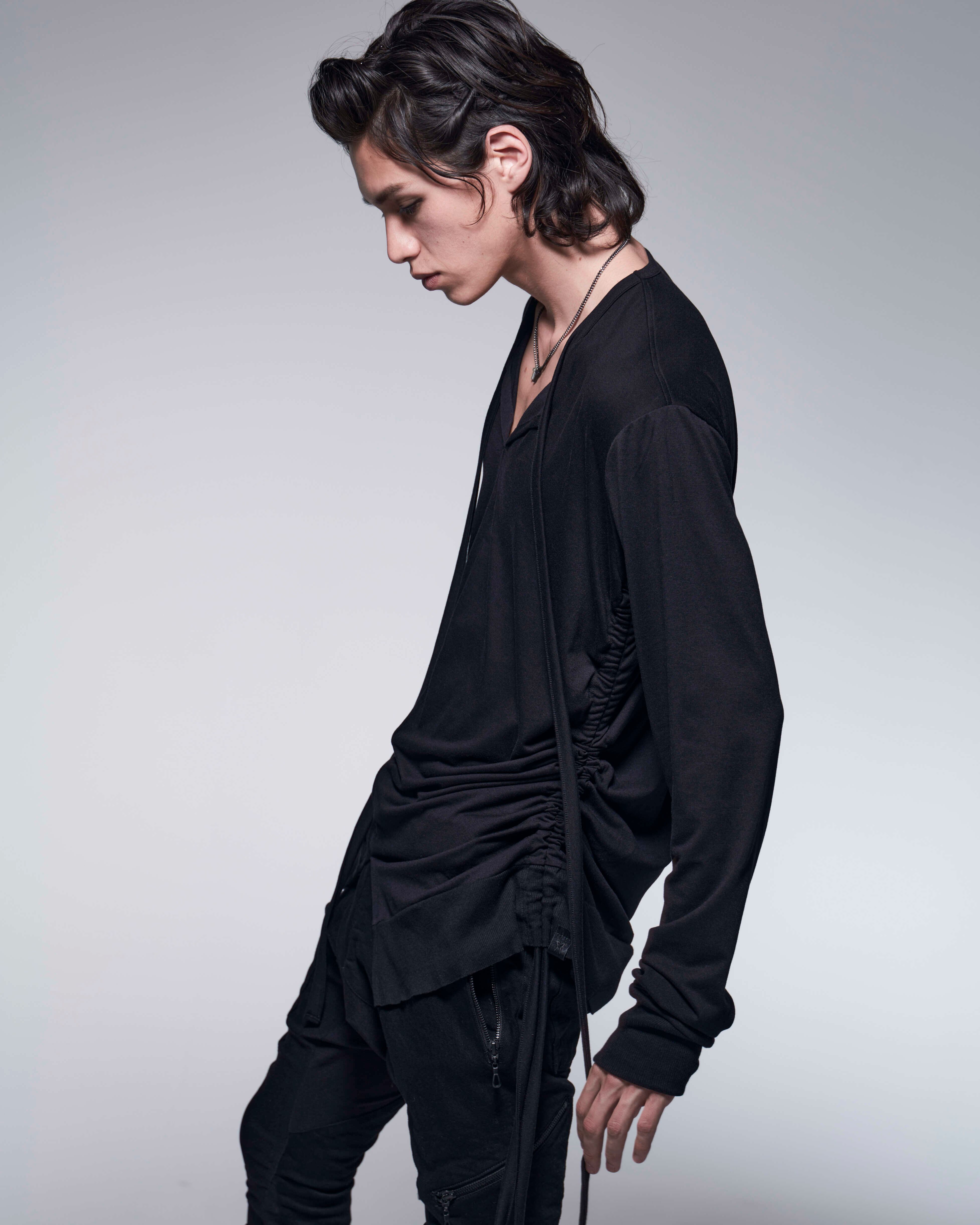 BEA TENJIKU Side Shirring Rib T-Shirt (BK)