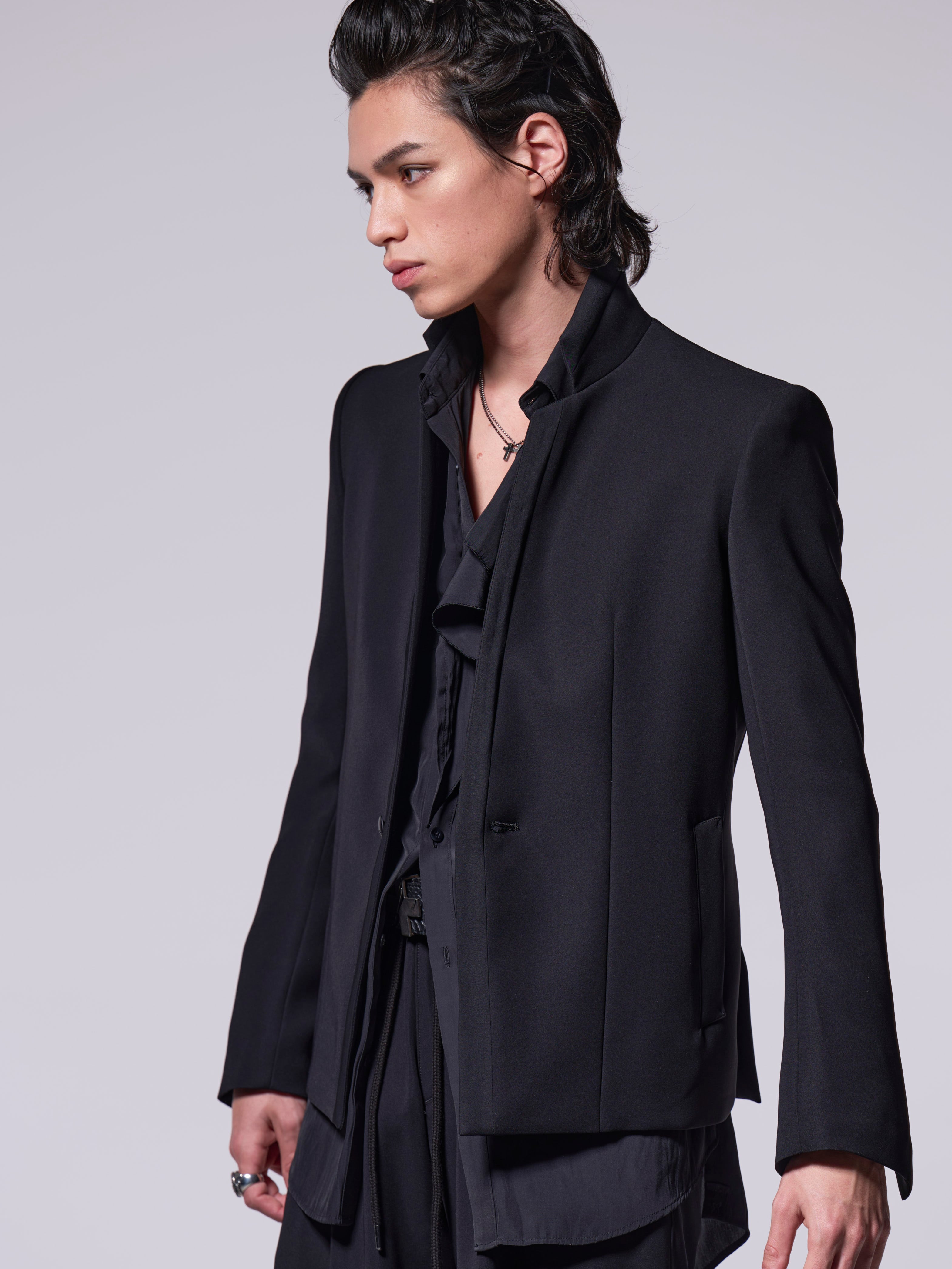 W-Satin Suede Stand Collar Short Jacket (BK)